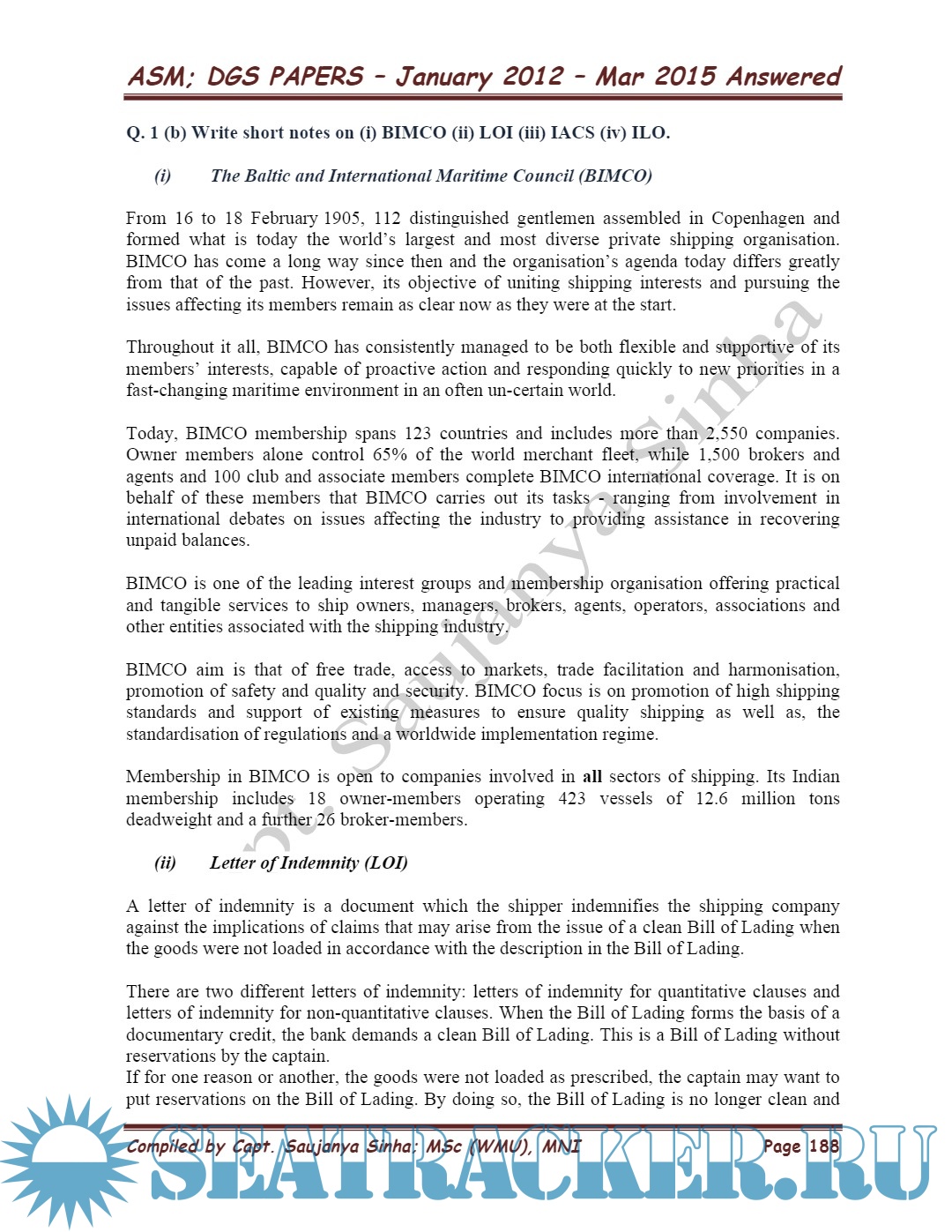 Description: Advanced Shipboard Management Master's examinations Question paper sets for Mercantile Marine Department (MMD), India solved by ARI Faculty Capt. Saujanya Sinha