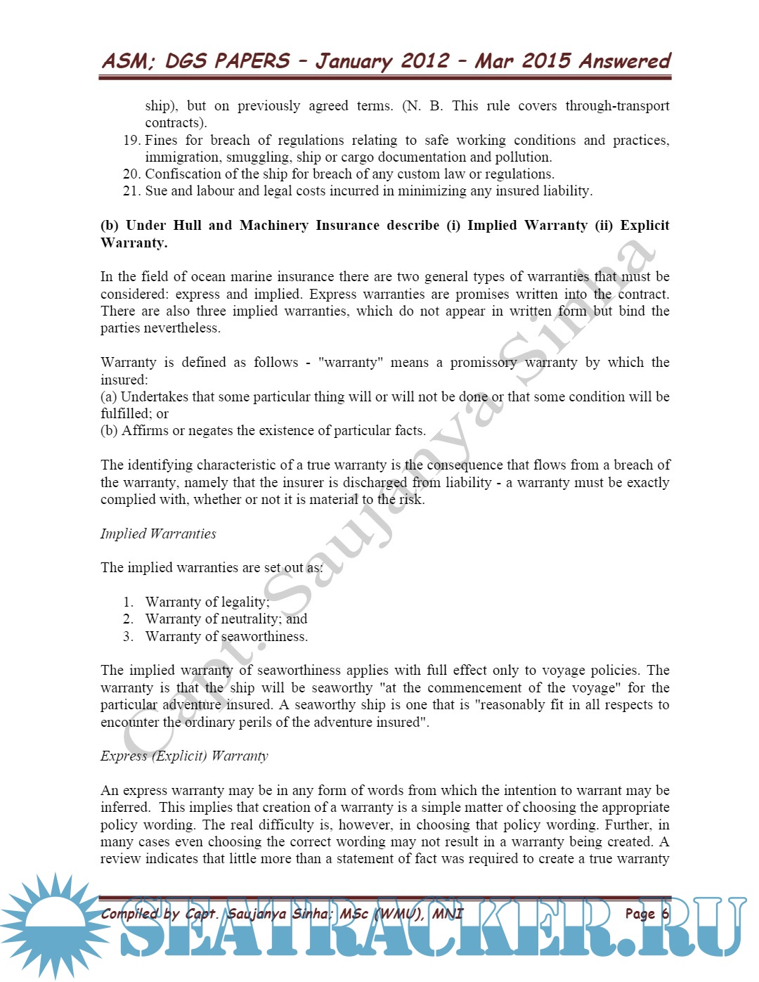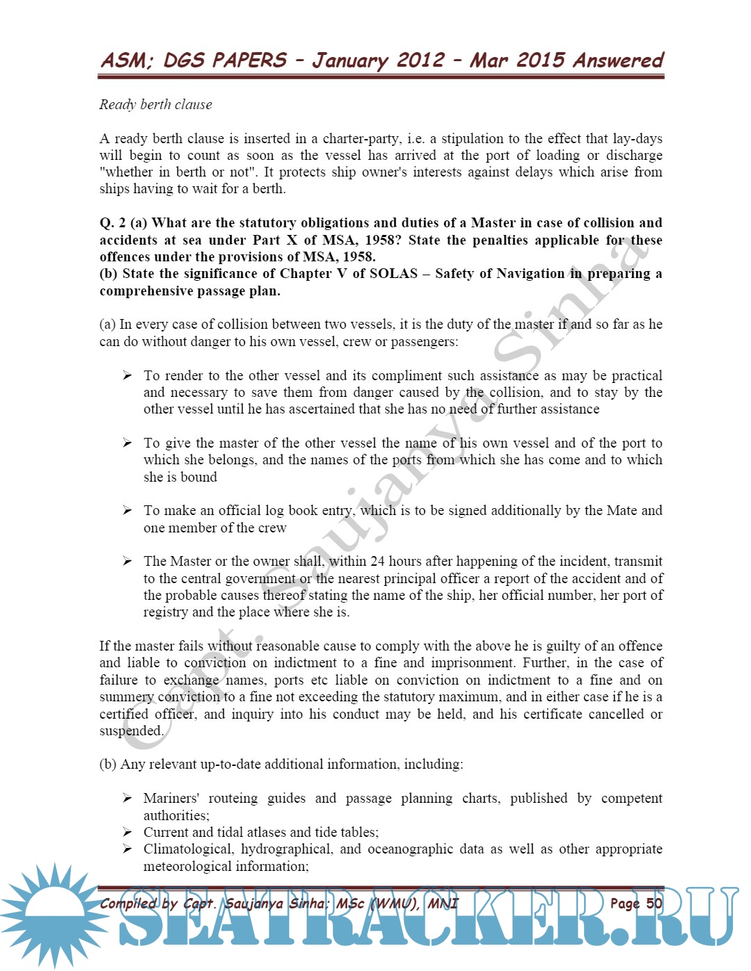 Solved Theory (2015-2012) - Past Question Papers Mercantile Marine Department (MMD), India…