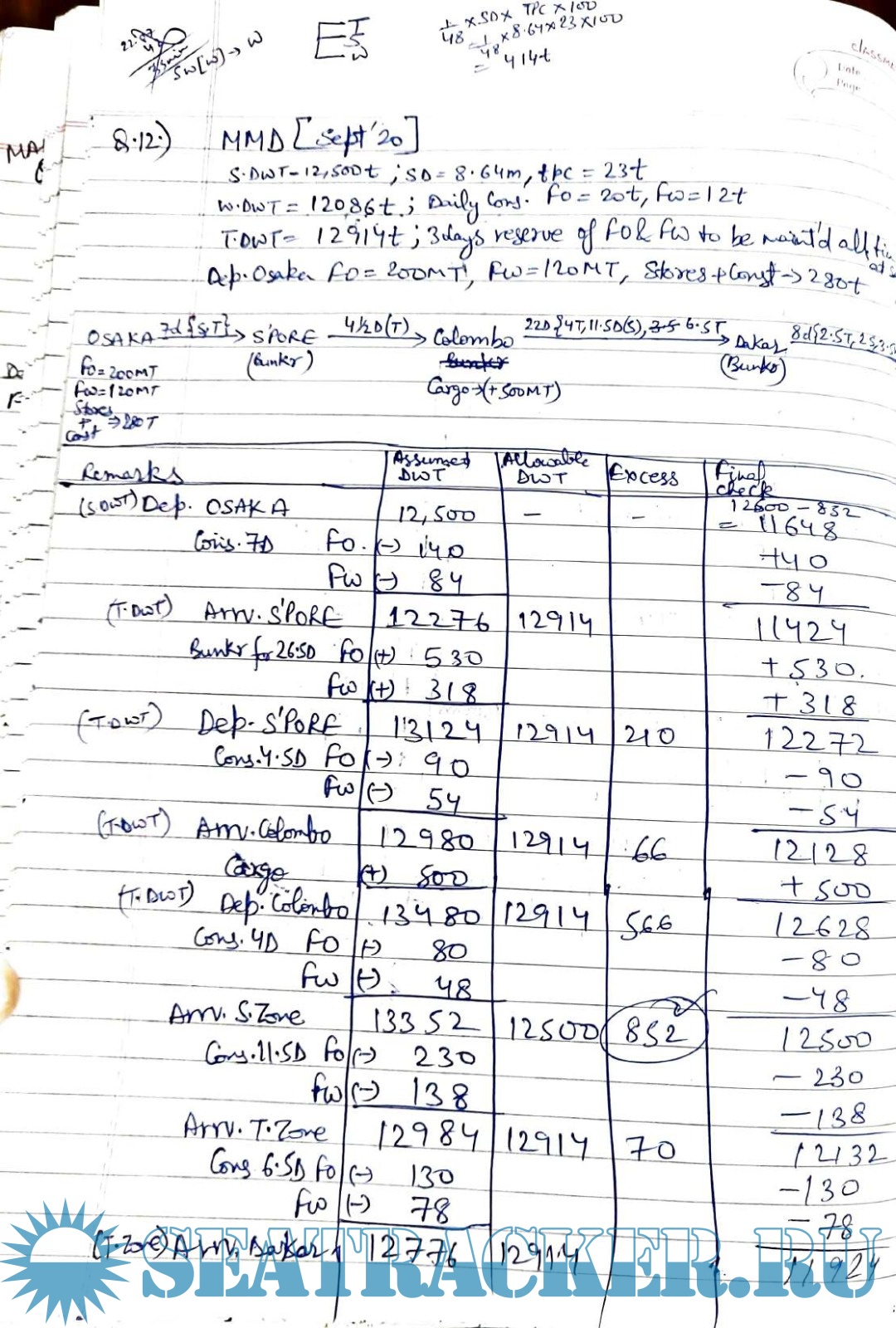 Description: Handwritten Solved numerical of Advanced Ship Master (ASM) , DG Shipping form year 2014-2022.