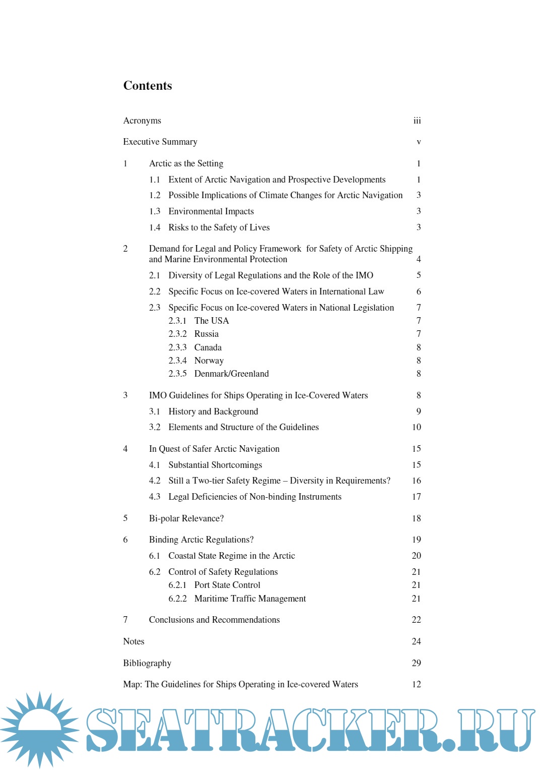 Year: 2007 Language: English Author: Øystein Jensen Genre: Reference book Format: PDF Quality: eBook Pages count: 43 Description: This report explores whether there is a need for strengthened and binding shipping regulations for the safety of navigation and protection of the Arctic marine environment. The various maritime, geopolitical and legal issues raised by the IMO Guidelines for Ships Operating in Arctic Ice-covered Waters are analyzed and discussed. Following an introduction of navigational and legal issues within the Arctic context, the report explores key elements and structure of the Arctic Guidelines, the roles of the governments, the IMO and classification societies in the law making process and any shortfalls of the current arrangement. The possible relevance for the Antarctic is also discussed. The key repercussions of a binding legal regime are then presented, while a separate section is devoted to recom mendations on the subject.