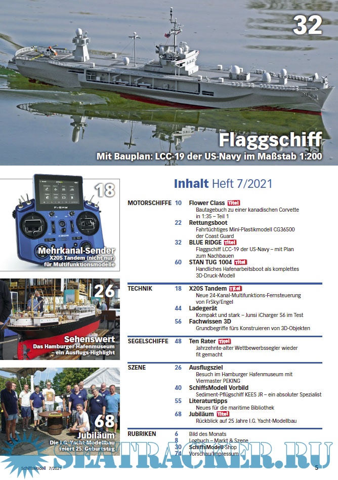 Year: 2021 Language: German Author: Mario Bicher (Redaktor) Genre: Periodical (magazine) Edition: 2021-07 Format: PDF Quality: eBook Pages count: 75 Description: SchiffsModell is the magazine for those who enjoy radio controlled and fully functional Modellnachbauten of ships of all kinds.