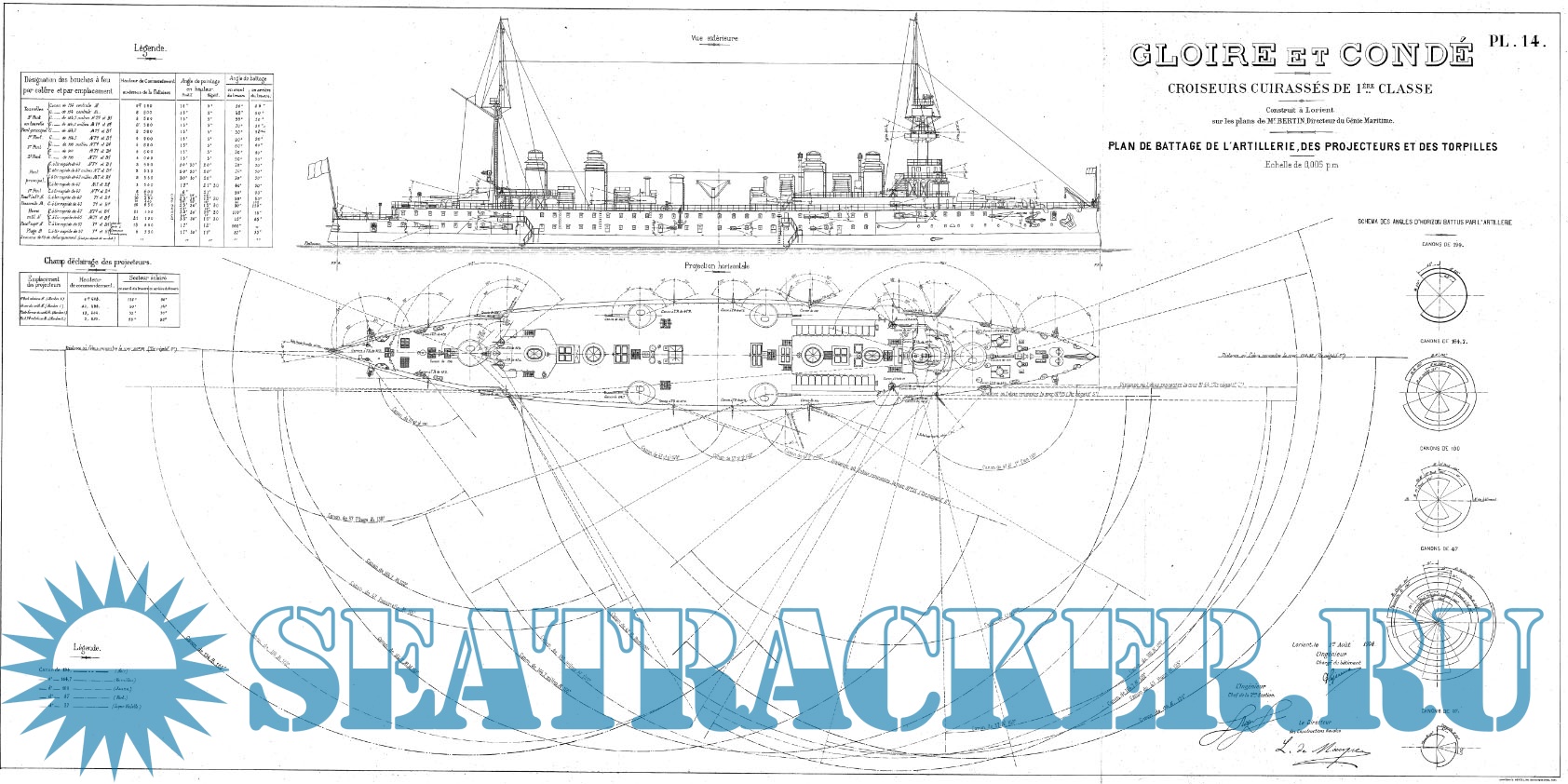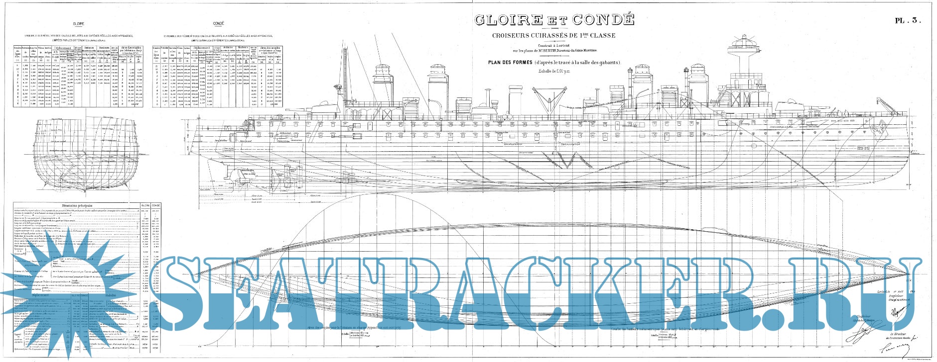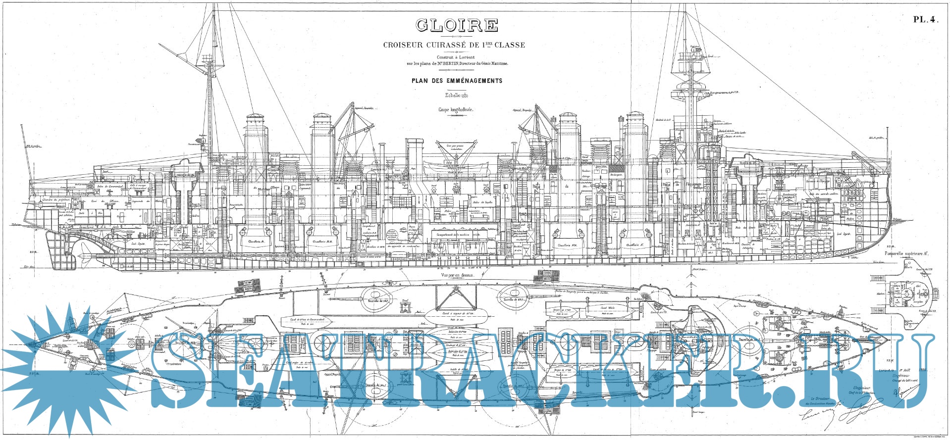 Архивные чертежи французского крейсера 1-го ранга GLOIRE 1900 год