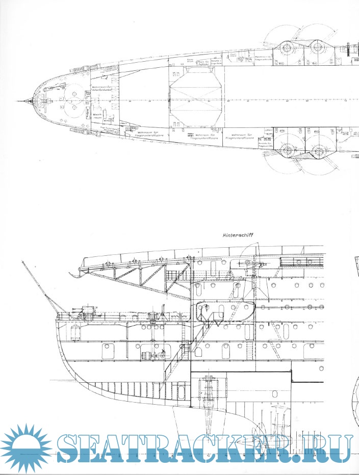 Начало работ по проектированию АВ в Германии относится к зиме 1933/1934 гг., когда бы ли сформулированы ТТТ: водоизмещение около 20 тысяч т, скорость полного хода 33 узла, 50-60 самолетов, восемь 203-мм орудий, мощное зенитное вооружение, защита – по стандартам для легких крейсеров.В процессе работы было решено заменить тяжелые 203-мм орудия на 150-мм, зенитную артиллерию принять в количестве десяти стволов калибра 105 мм и крупнокалиберных пулеметов, а скорость увеличить до 35 узлов.
