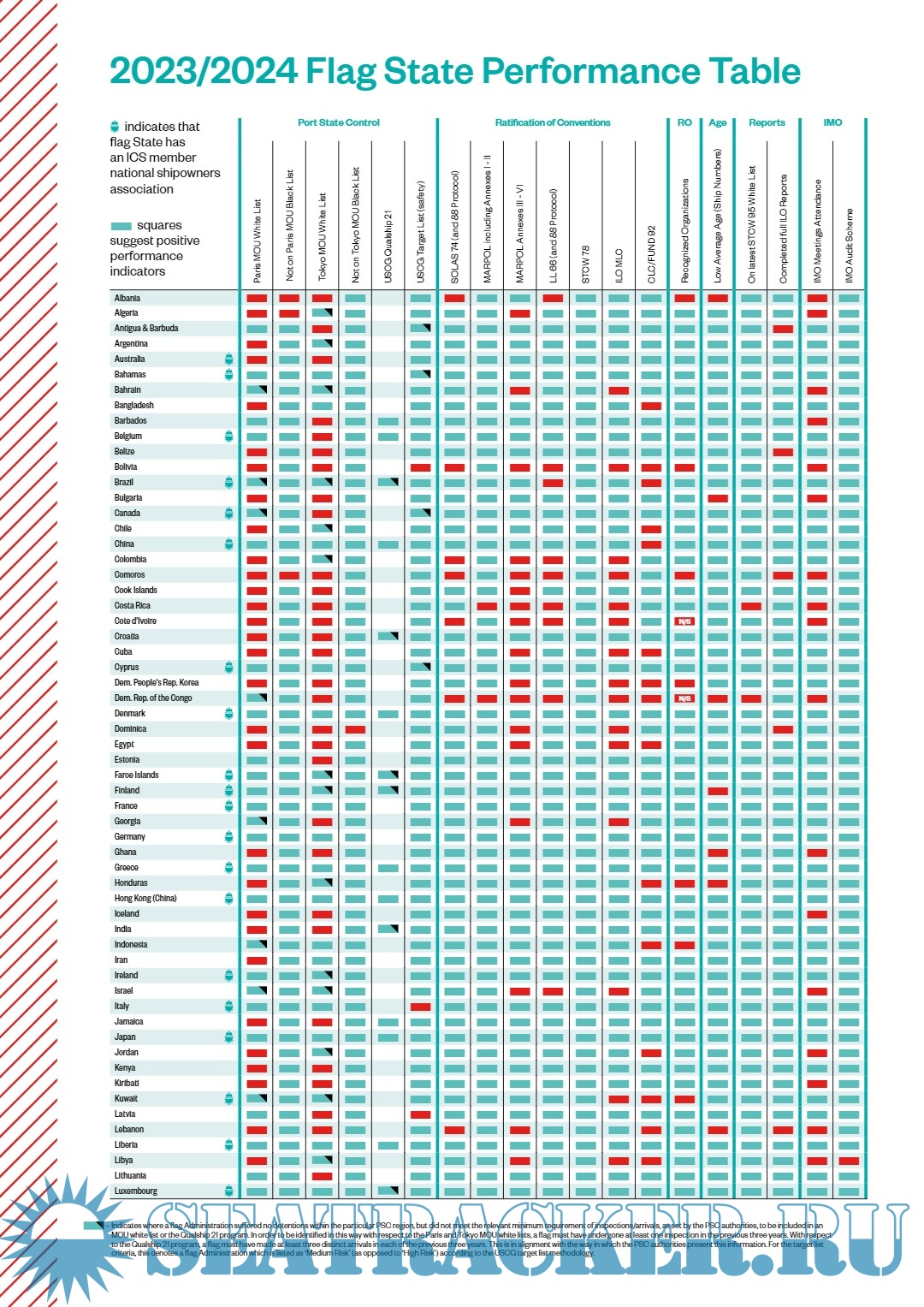 Year: 2024 Language: English Author: International Chamber of Shipping (ICS) Genre: Research papers Publisher: Marisec Publications Format: PDF Quality: eBook Pages count: 10 Description: There is nothing inherently unusual in an international ship registry system in which the owner of a ship may be located in a country other than the State whose flag the ship flies. However, a balance has to be struck between the commercial advantages of selecting a particular flag and the need to discourage the use of flags that do not meet their international obligations. The purpose of this Flag State Performance Table is two-fold: • To encourage shipowners and operators to examine whether a flag State has sufficient substance before using it. • To encourage shipowners and operators to put pressure on their flag Administrations to affect any improvements that might be necessary, especially in relation to safety of life at sea, the protection of the marine environment, and the provision of decent working and living conditions for seafarers.