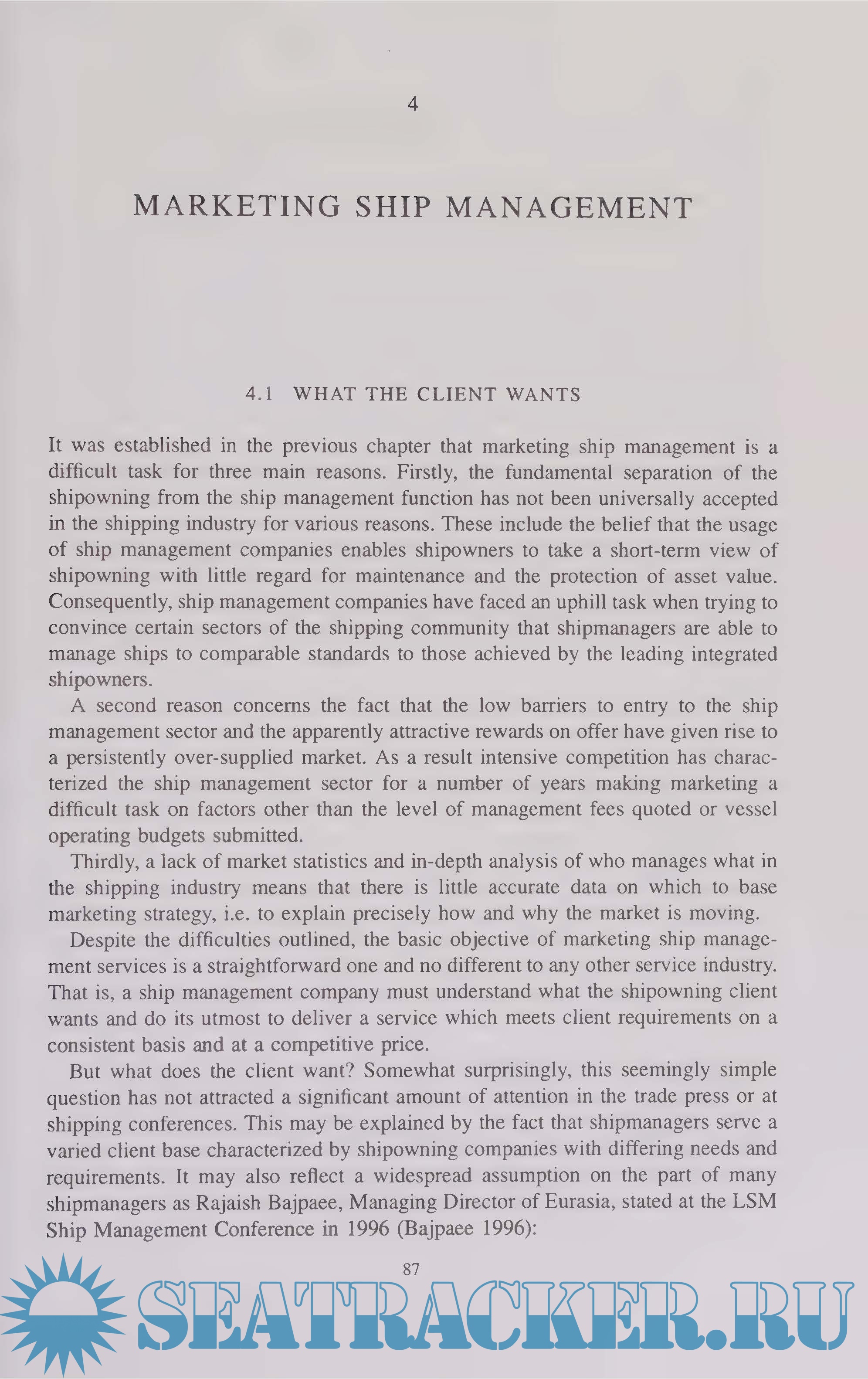 The main aim of this book is to provide a clear insight into independent ship management a sector of the international shipping industry which has experienced significant growth over a relatively short space of time. It looks at the services which shipmanagers provide, some of the problems they face and possible future directions amongst other aspects and, hopefully, provides the reader with an appetite for further knowledge.