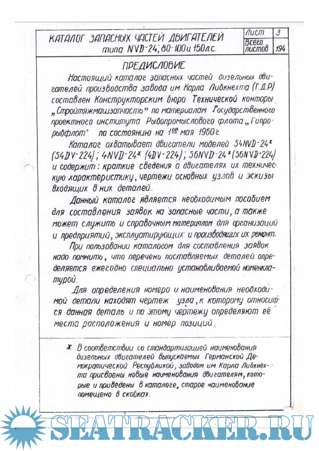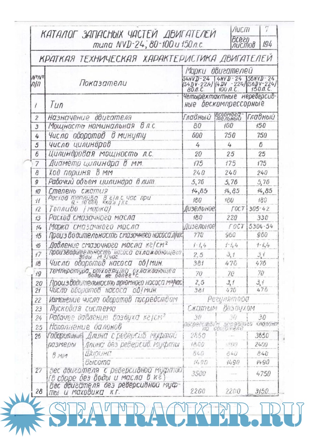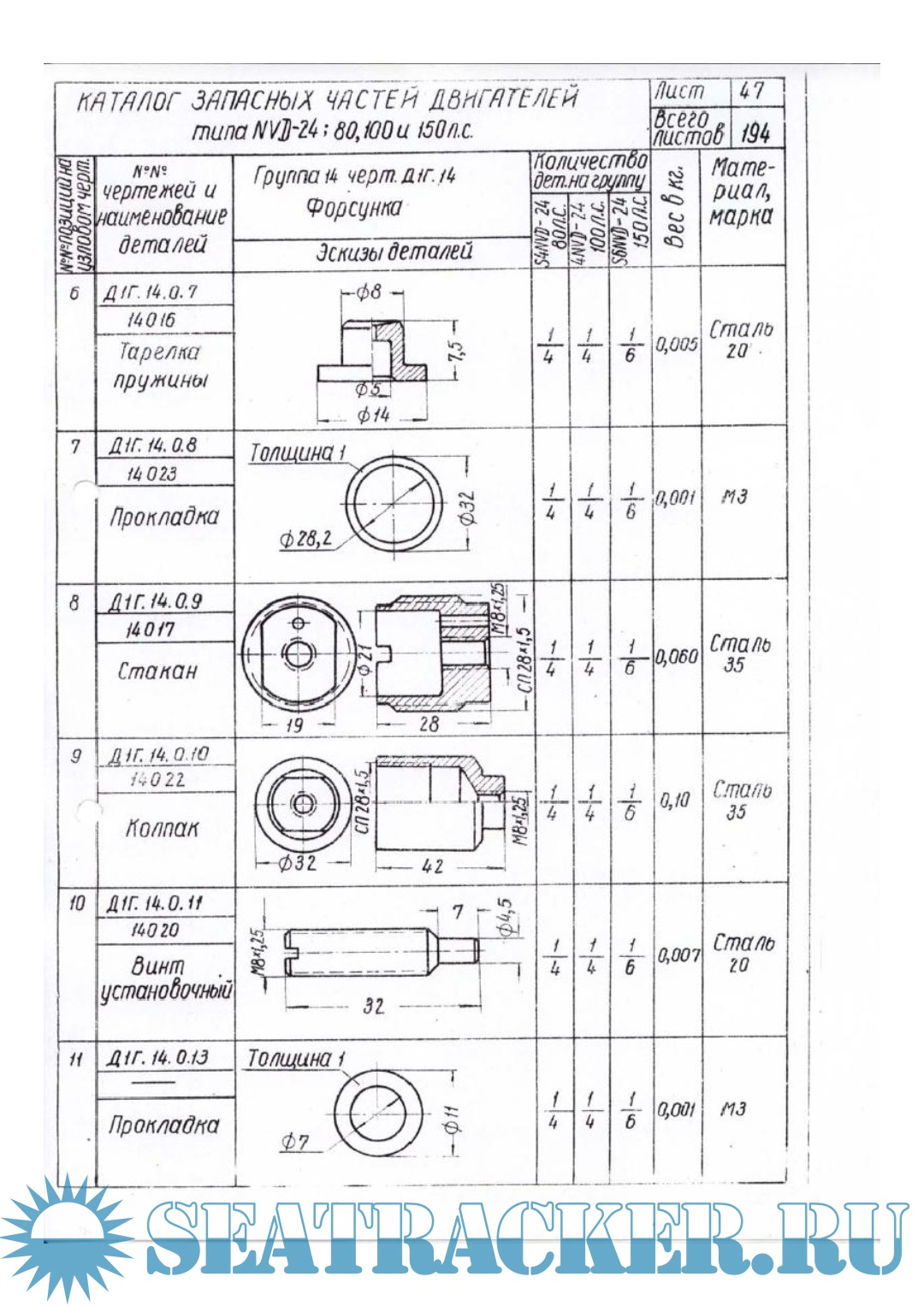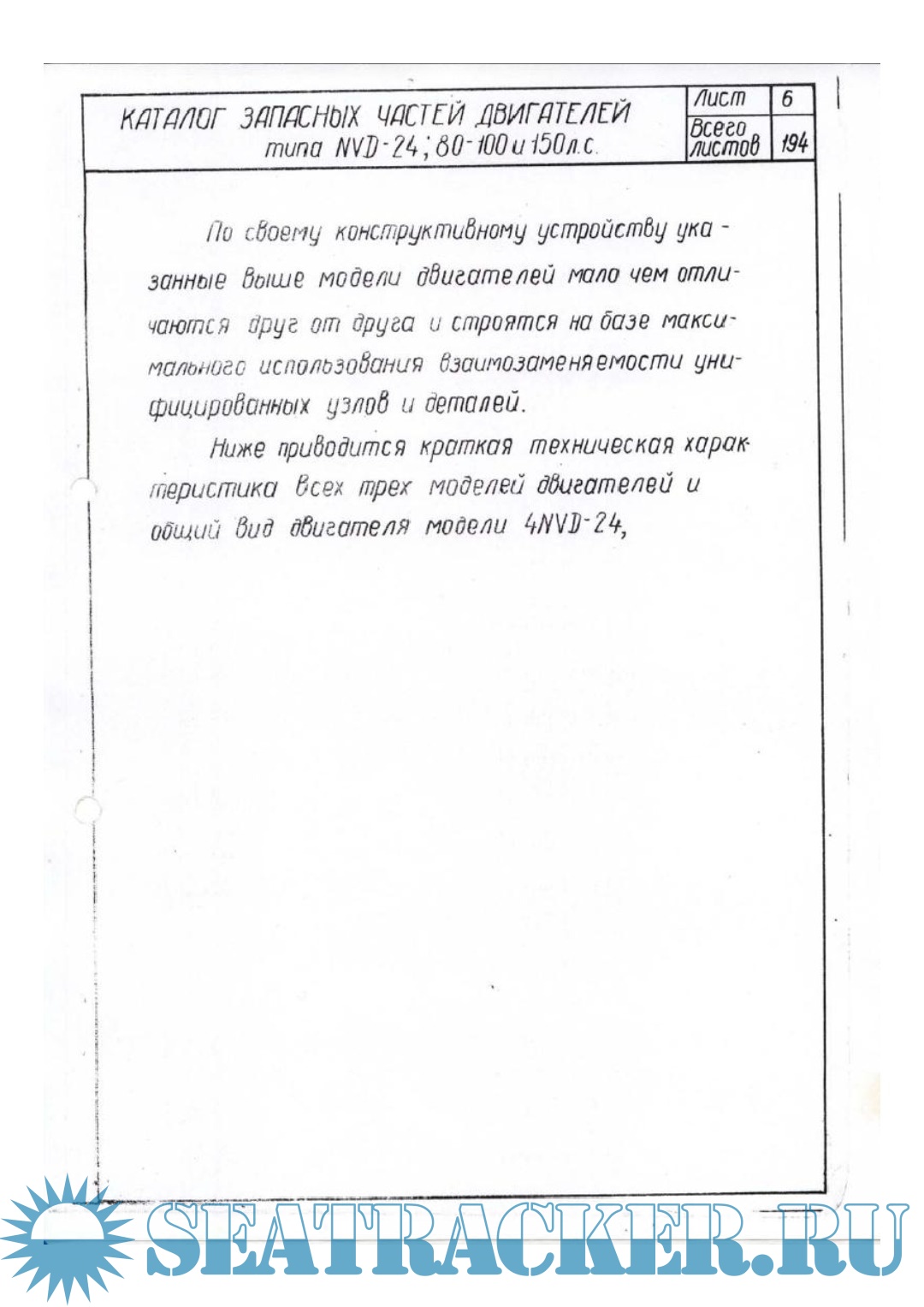 Каталог запасных частей двигателей типа NVD 24 (80, 100, 150 л.с.)