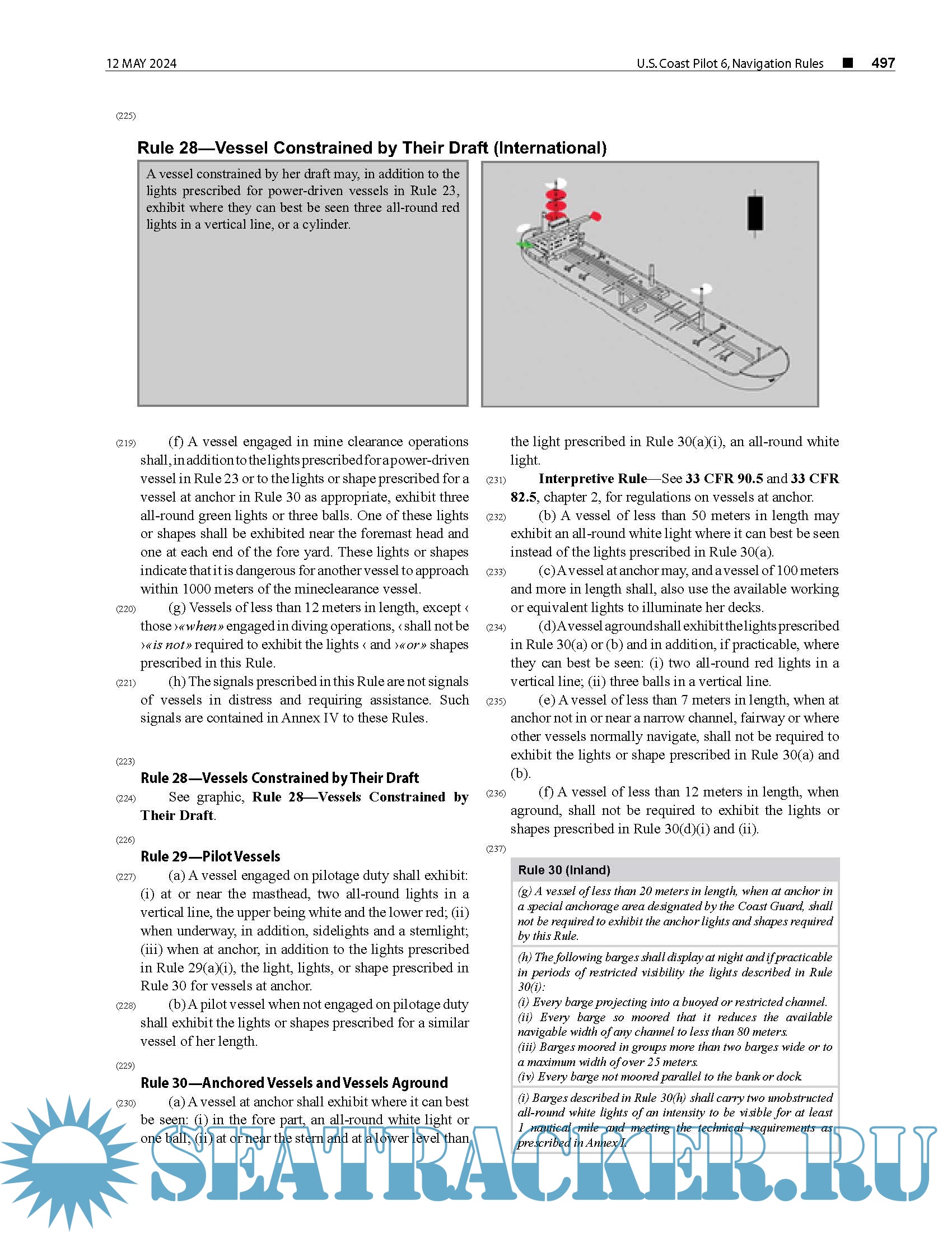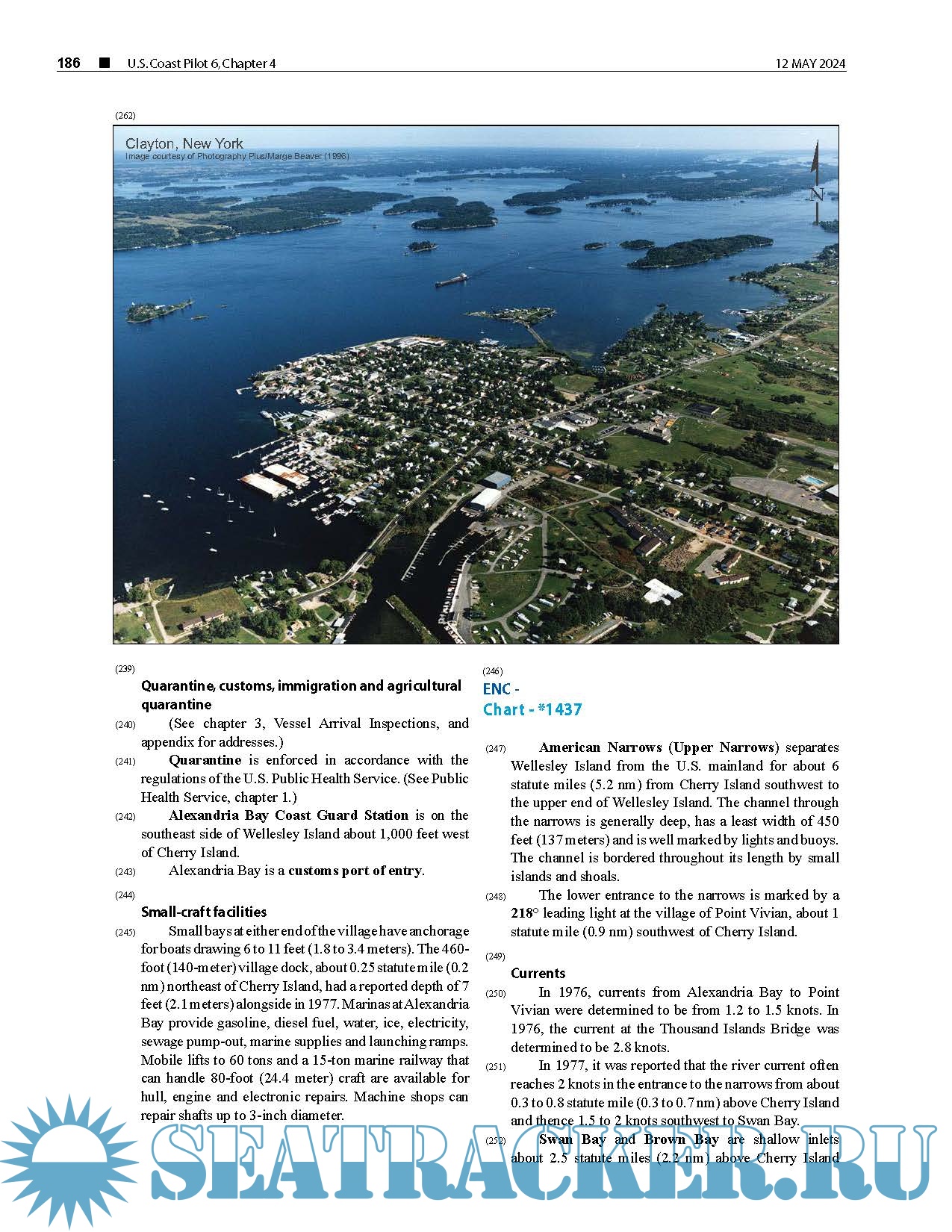 Topics in the Coast Pilot include channel descriptions, anchorages, bridge and cable clearances, currents, tide and water levels, prominent features, pilotage, towage, weather, ice conditions, wharf descriptions, dangers, routes, traffic separation schemes, small-craft facilities, and Federal regulations applicable to navigation.\