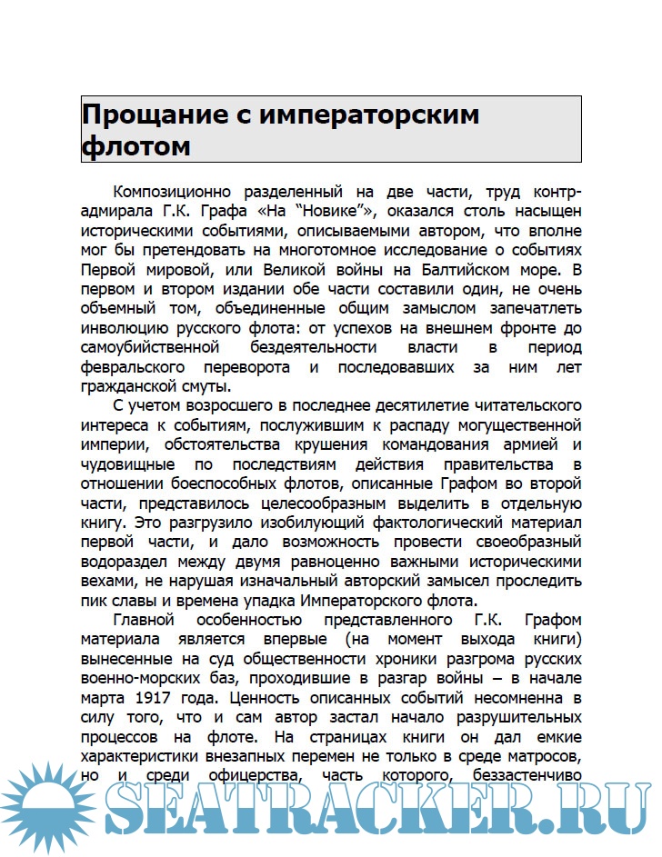 Описание: В среде русской эмиграции Гаральд Карлович Граф (1885–1966) был известен не только как бывший старший офицер эскадренного миноносца «Новик», капитан 2-го ранга, участник Русско-японской, Первой мировой и Гражданской войн, но и как автор знаменитой книги «На “Новике”. Балтийский флот в войну и революцию», изданной в Германии в 1922 году. Успех книги был феноменален. Ее читали обыватели, бывшие офицеры русской армии и флота, великие князья, либералы русского зарубежья. Читали даже преподаватели советских военных академий и работники ОГПУ по долгу службы…