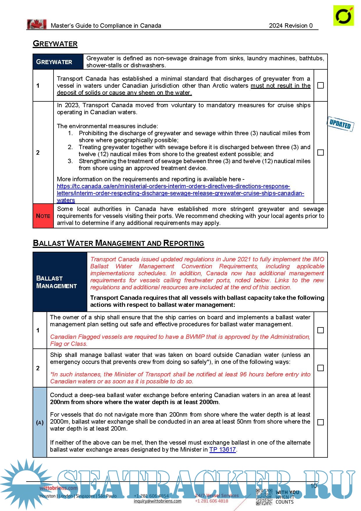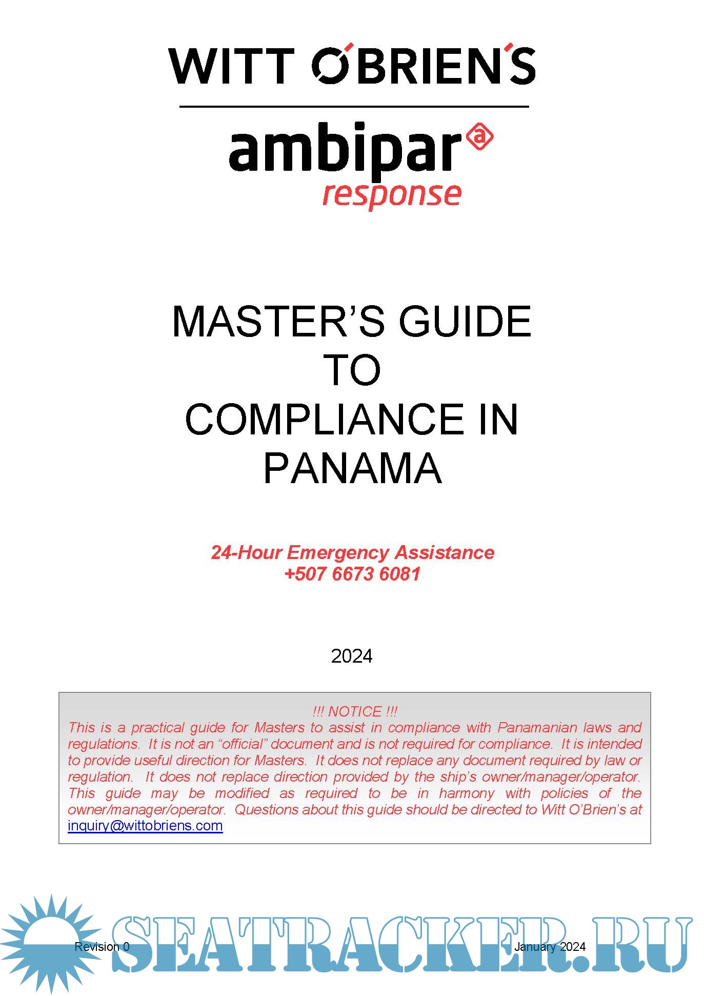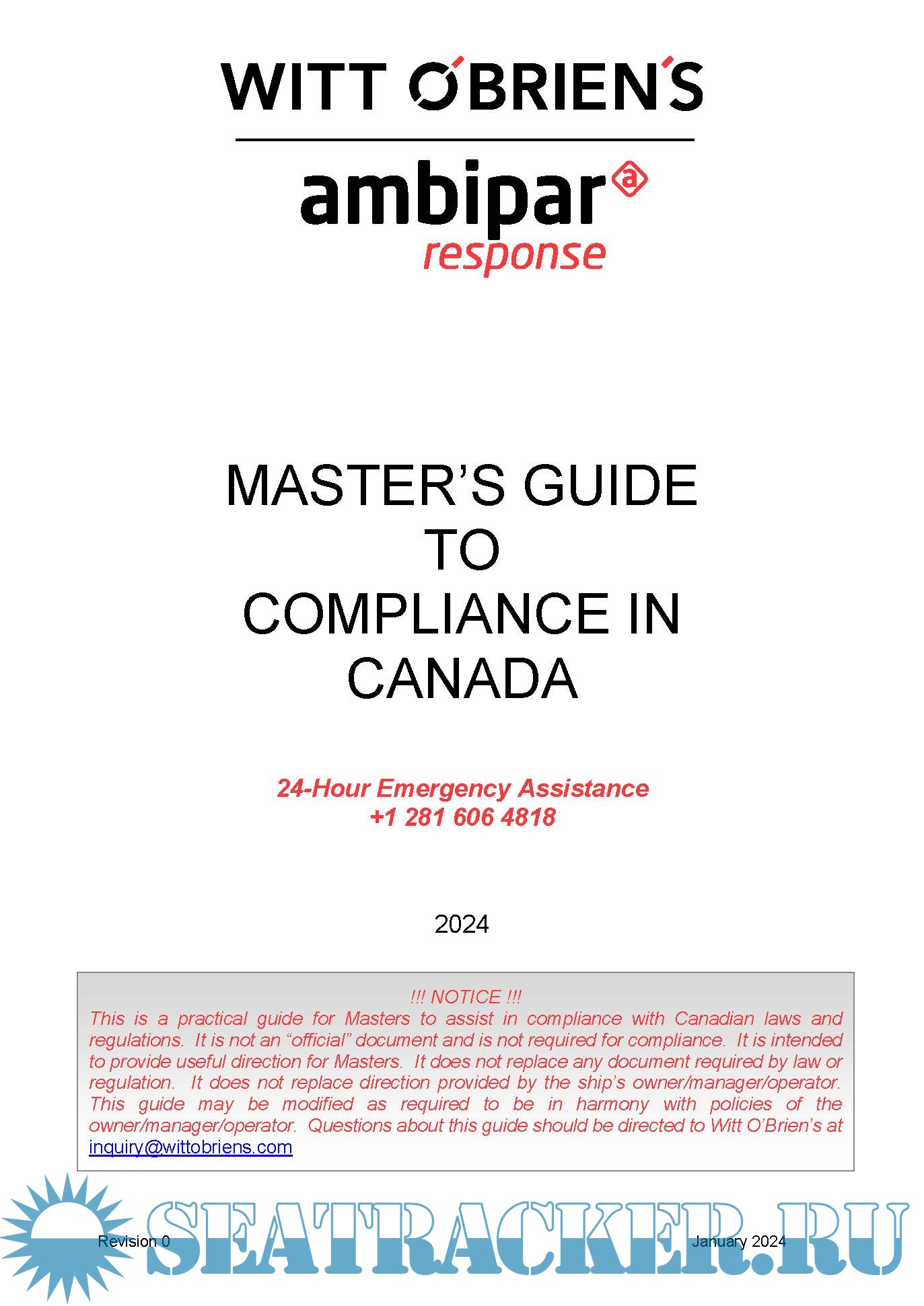 Year: 2024 Language: English Author: Witt O'Brien's Genre: Guide Edition: Rev.0 2024 Format: PDF Quality: eBook Pages count: Multiple Description: The Master of any vessel making a call to the United States, Canada or Panama (OOPS especially when transiting the Panama Canal) faces several regulatory issues that are specific to the country of call. Your vessel is enrolled with Witt O’Brien’s to ensure compliance with multiple regulations. These guides are intended to help the Master effectively and efficiently face these issues. Use of the directions in the guides will allow Witt O’Brien’s to better serve you. Information designed to save you time and effort is present in orange italics.