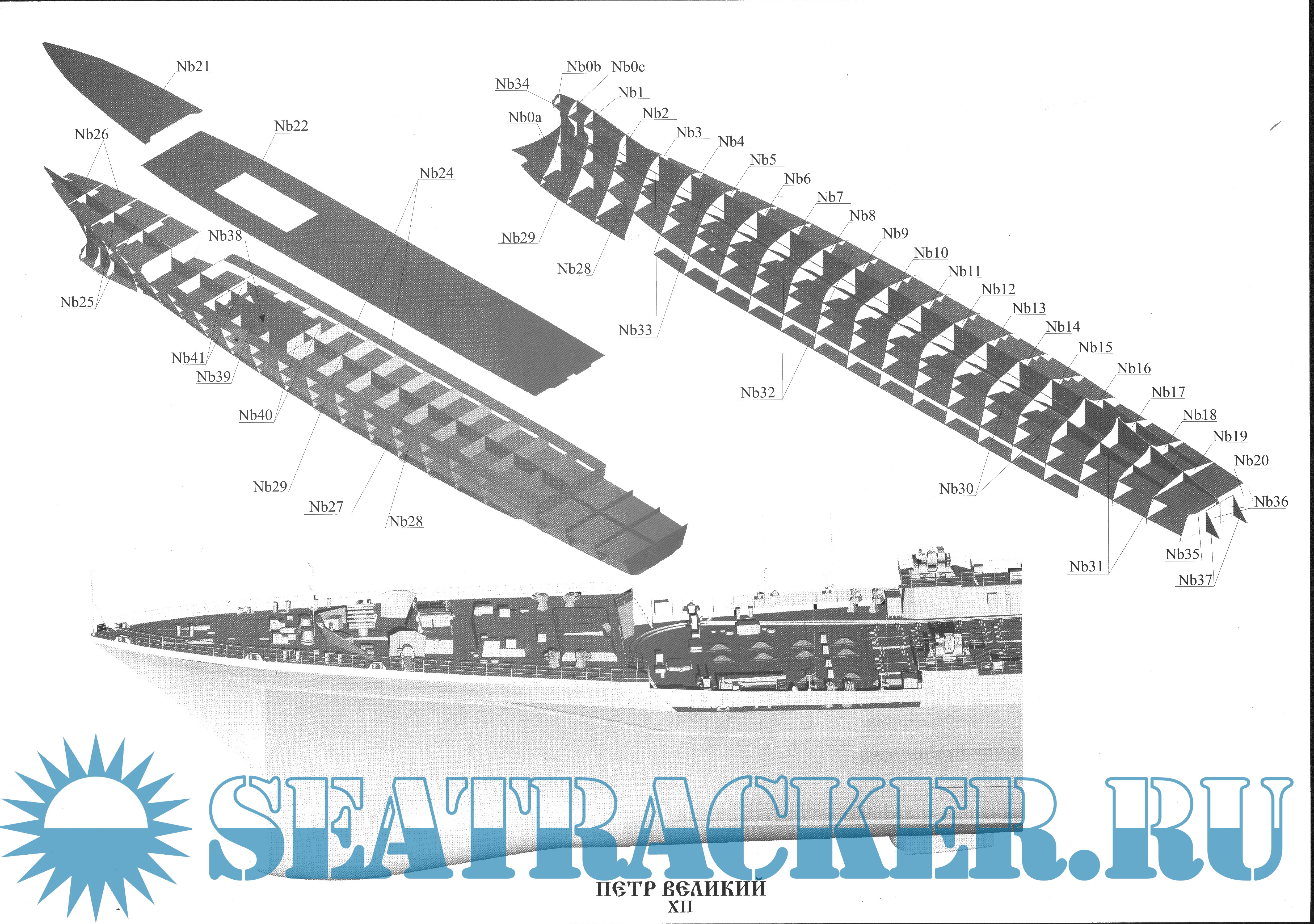 57 листов цветных выкроек и инструкций для изготовления бумажной модели ТАРК Пётр Великий