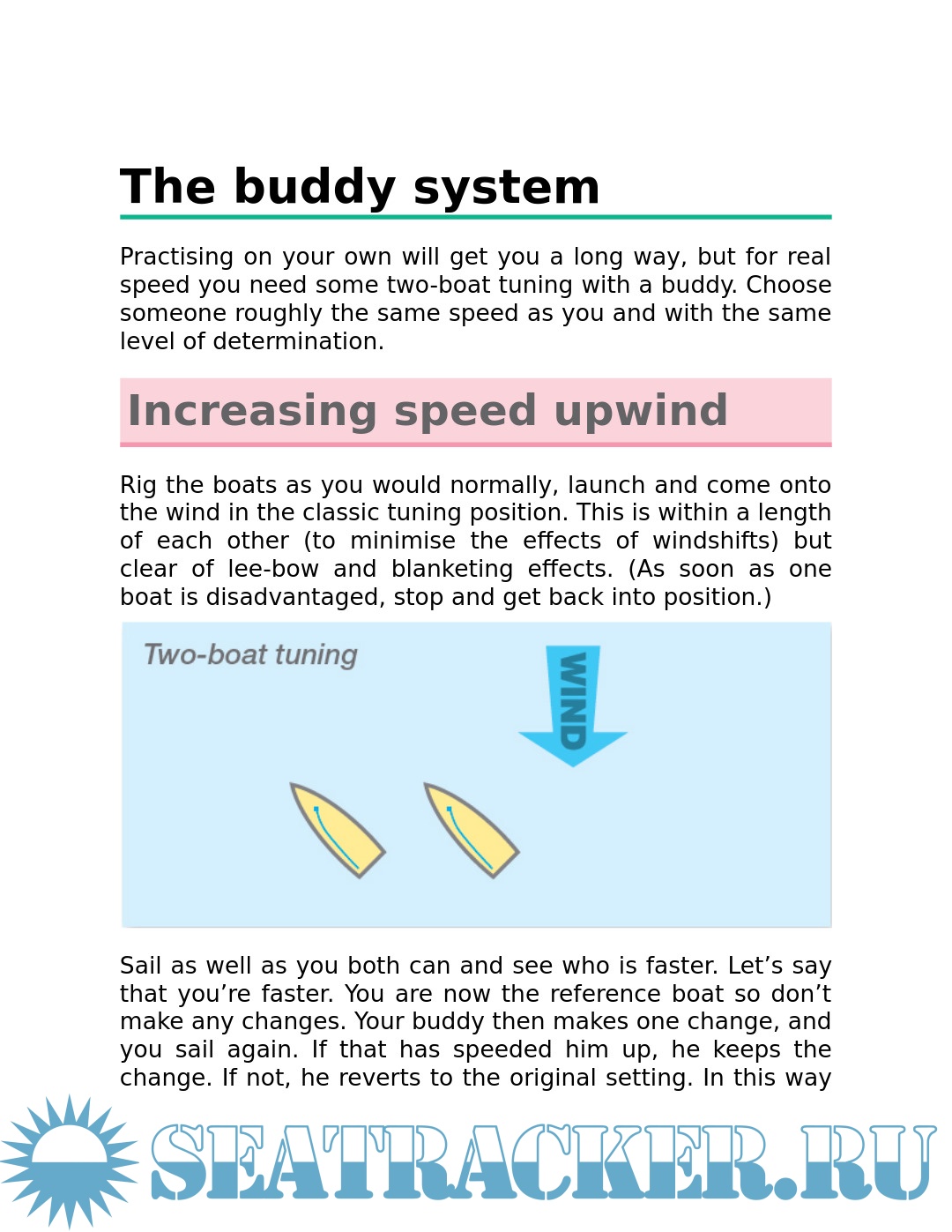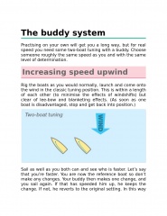 - practising and tuning (straight line, tacking, gybing, rounding marks, doing penalties)