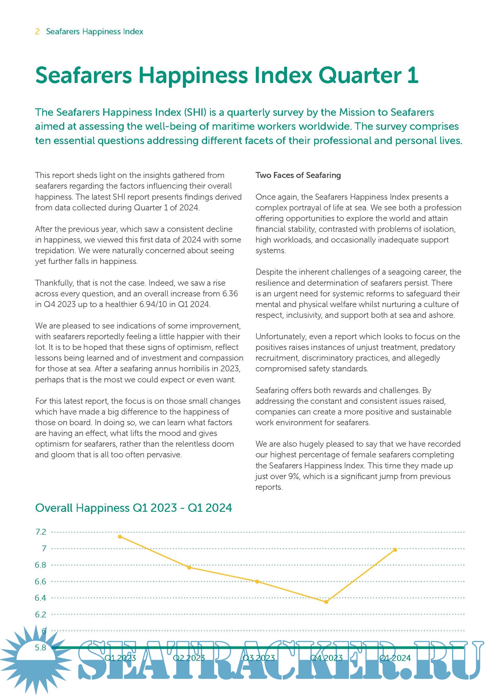 This report sheds light on the insights gathered from seafarers regarding the factors influencing their overall happiness. The latest SHI report presents findings derived from data collected during Quarter 1 of 2024.