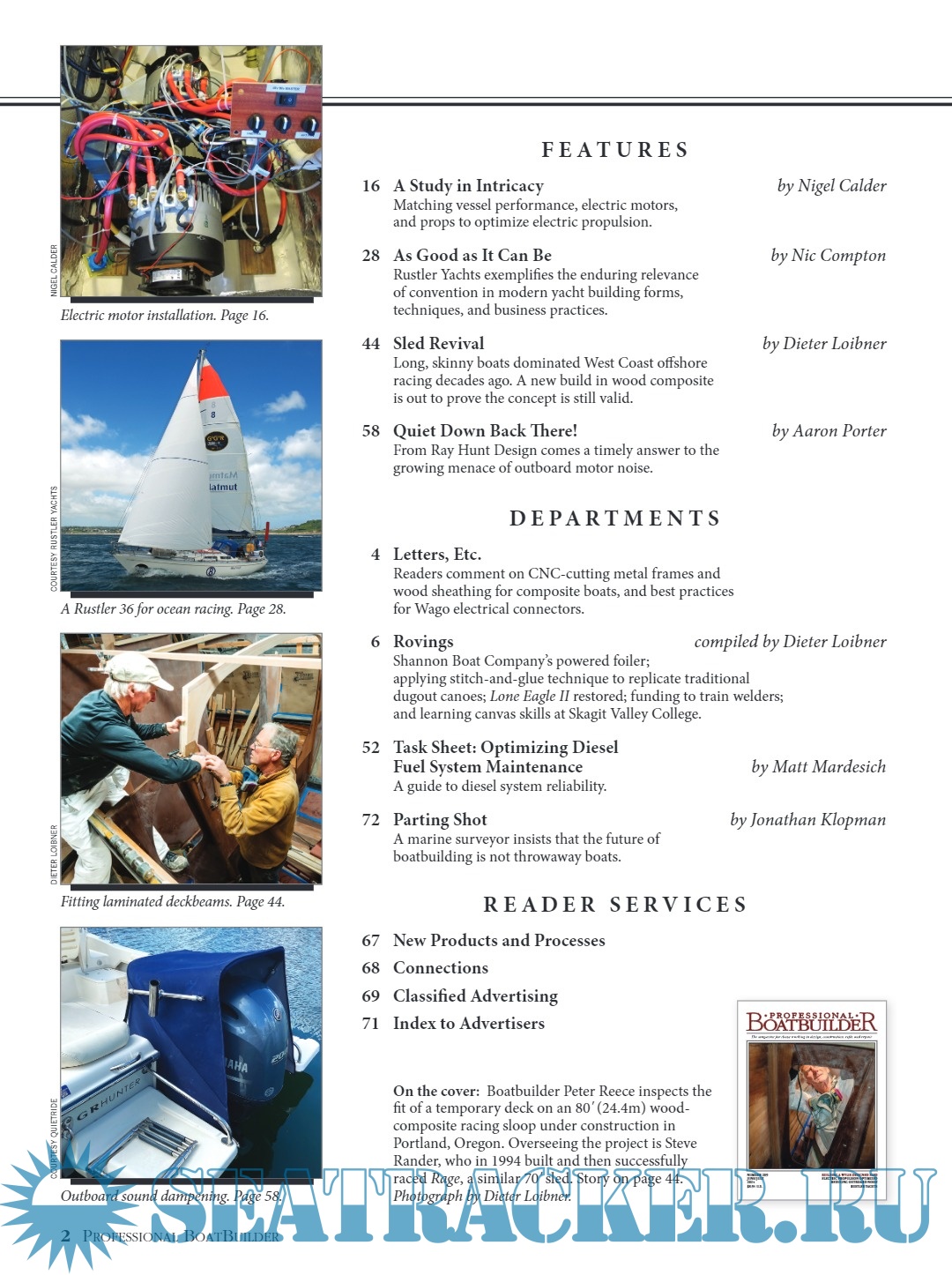 Description: Professional BoatBuilder magazine is written and edited for boatbuilders, repairers, designers, and surveyors.Published six times a year, by WoodenBoat Publications, Inc., it focuses on materials, design, and construction techniques and repair solutions chosen by marine professionals.Regular technical articles provide detailed, real-world examples to improve the efficiency and quality of their work. Professional BoatBuilder has an audited circulation of 24,000 readers, worldwide.