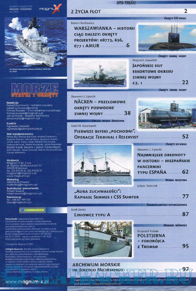 Description: Польский морской журнал. Издается с 1996 года, первоначально как ежеквартальный. С 1999 года издается раз в два месяца, а с 2007 года-как ежемесячный. Первоначально назывался Morza Statki i Okrety, в 2006 году переименован в Morze Statki i Okrety. С 2004 года полностью цветной (ранее только вставки). В 2008 году стали издаваться специальные выпуски, первоначально нерегулярные. С 2014 года выпускается как обычное издание и специальное издание, с непрерывной нумерацией.
