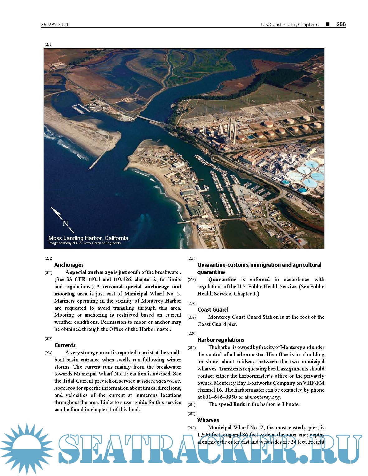Year: 2024 Language: English Author: NOAA Genre: Documentation Edition: 2024 (56th) Edition Format: PDF Quality: eBook Pages count: 372 Description: The United States Coast Pilot® consists of a series of nautical books that cover a variety of information important to navigators of coastal and intracoastal waters and the Great Lakes. Issued in ten volumes, they contain supplemental information that is difficult to portray on a nautical chart. Topics in the Coast Pilot include channel descriptions, anchorages, bridge and cable clearances, currents, tide and water levels, prominent features, pilotage, towage, weather, ice conditions, wharf descriptions, dangers, routes, traffic separation schemes, small-craft facilities, and Federal regulations applicable to navigation. This edition cancels the 55th Edition and includes all previously published corrections. Updated upto 26 May 2023
