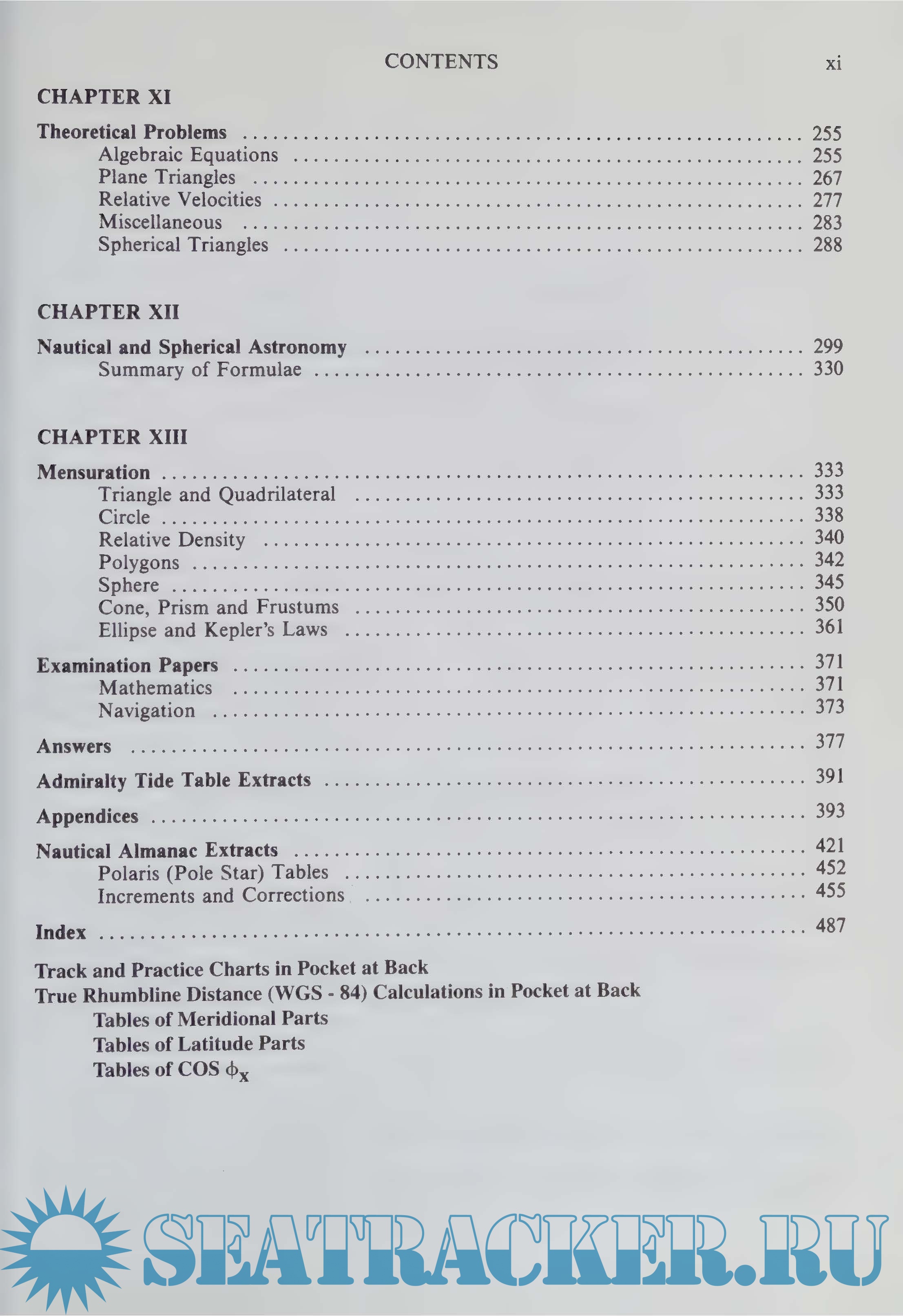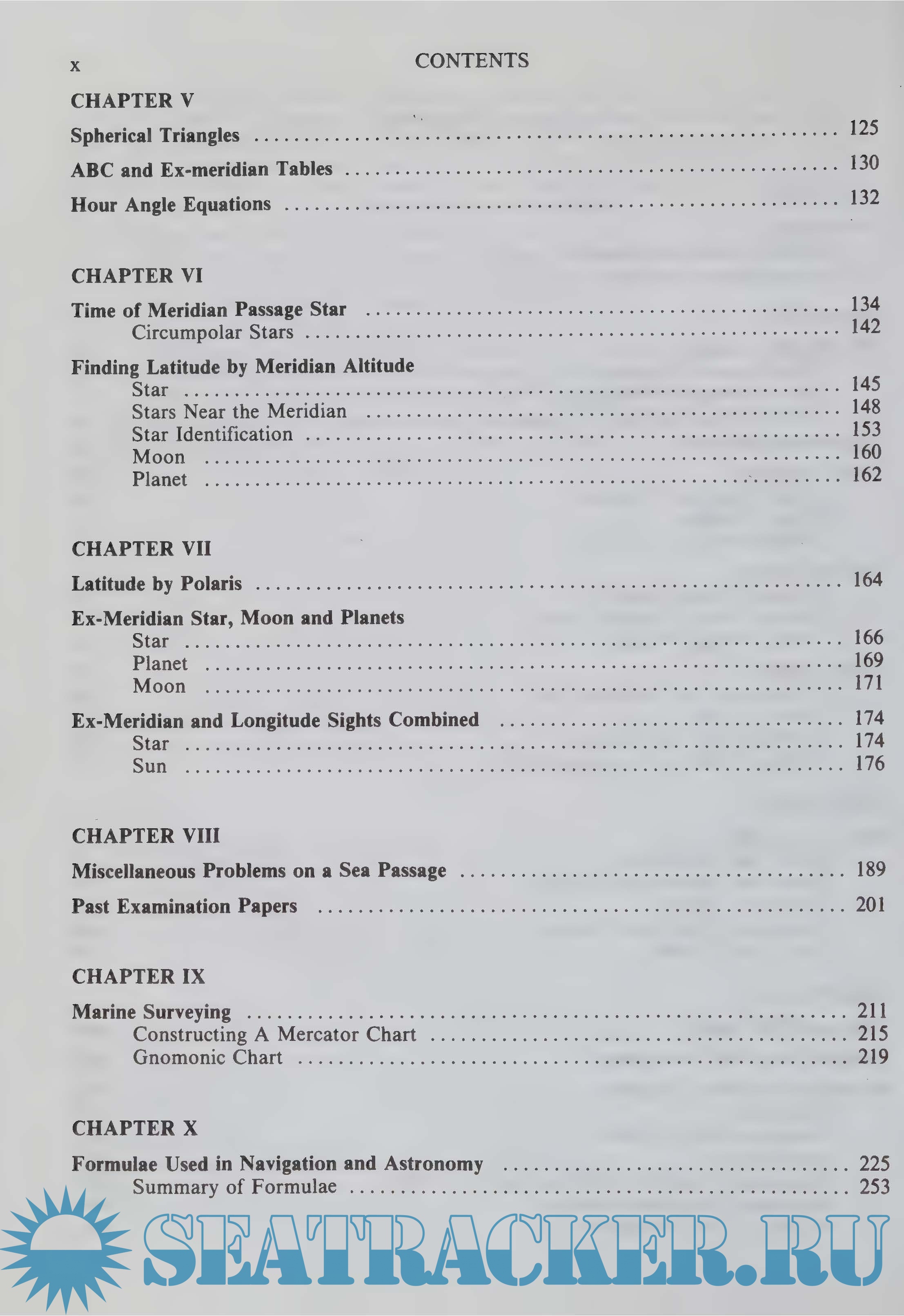 Numerous figures have been re-drawn and new ones added. New features include a check list system of instructions for Tidal Calculations (worked on the new Admiralty Forms, NP204), Radar Plotting, Passage Planning and for Finding Suitable Stars for Meridian Altitudes. Where appropriate, the various steps involved in calculations and procedure have been included in the worked examples and directly linked to the cheek lists and pro-formas provided. It is to be hoped that these inclusions will reduce learning times and be of assistance to the student working privately at sea and also, perhaps, to colleges in those parts of the developing world where there is a shortage of technical instructors.