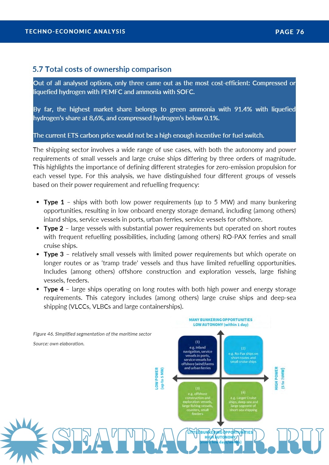 The analysis is made on the basis of the total cost of ownership comparison and covers all sea-going vessels - from ships used exclusively for short sea application, e.g., ferries, ro-ro ships, general cargo ships and small containerships, through cruise ships and up to ships used mostly on intercontinental voyages, e.g., VLCCs, VLBCs and large containerships.