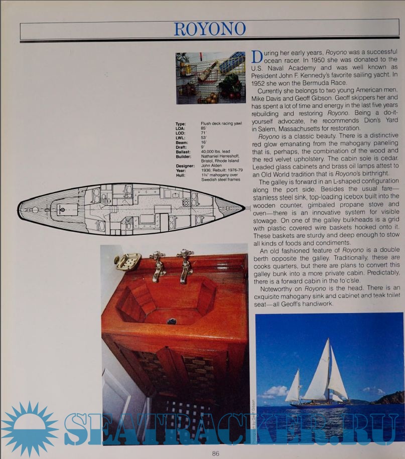 Year: 1982 Language: English Author: Jill Borrow & Dana Jinkins Genre: Technical book Format: PDF Quality: Photos of pages Pages count: 195 Description: 'Classic Yacht Interiors' is the most comprehensive book on the subject to date. Over 120 different yachts (ranging in length from 25' - 353') are represented with superb color photographs and descriptive text. Included are exterior shots, accommodation plans, and separate sections on Main Saloons, Galleys, Heads, Cockpits, and Navigation Areas.