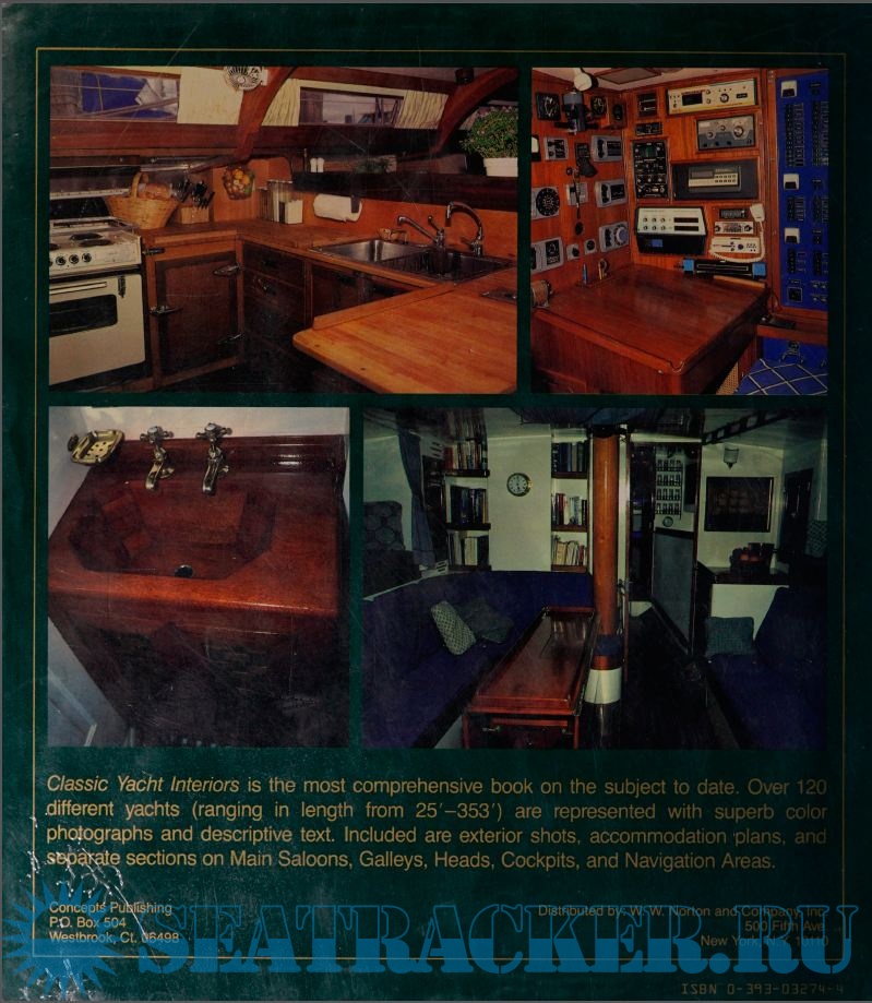 Description: 'Classic Yacht Interiors' is the most comprehensive book on the subject to date. Over 120 different yachts (ranging in length from 25' - 353') are represented with superb color photographs and descriptive text. Included are exterior shots, accommodation plans, and separate sections on Main Saloons, Galleys, Heads, Cockpits, and Navigation Areas.