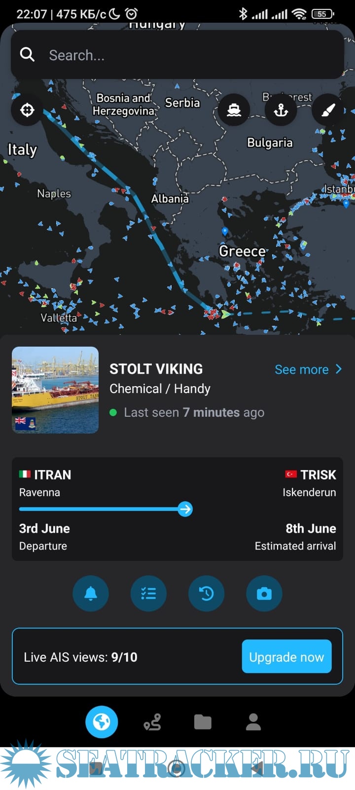 - Share your location from mobile and find ships nearby you, within a 10 km radius.