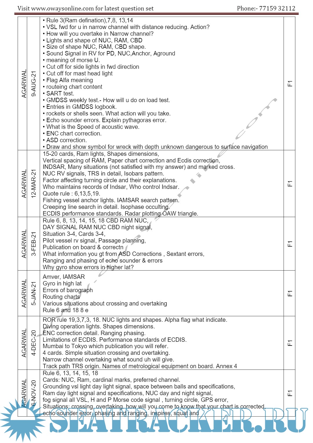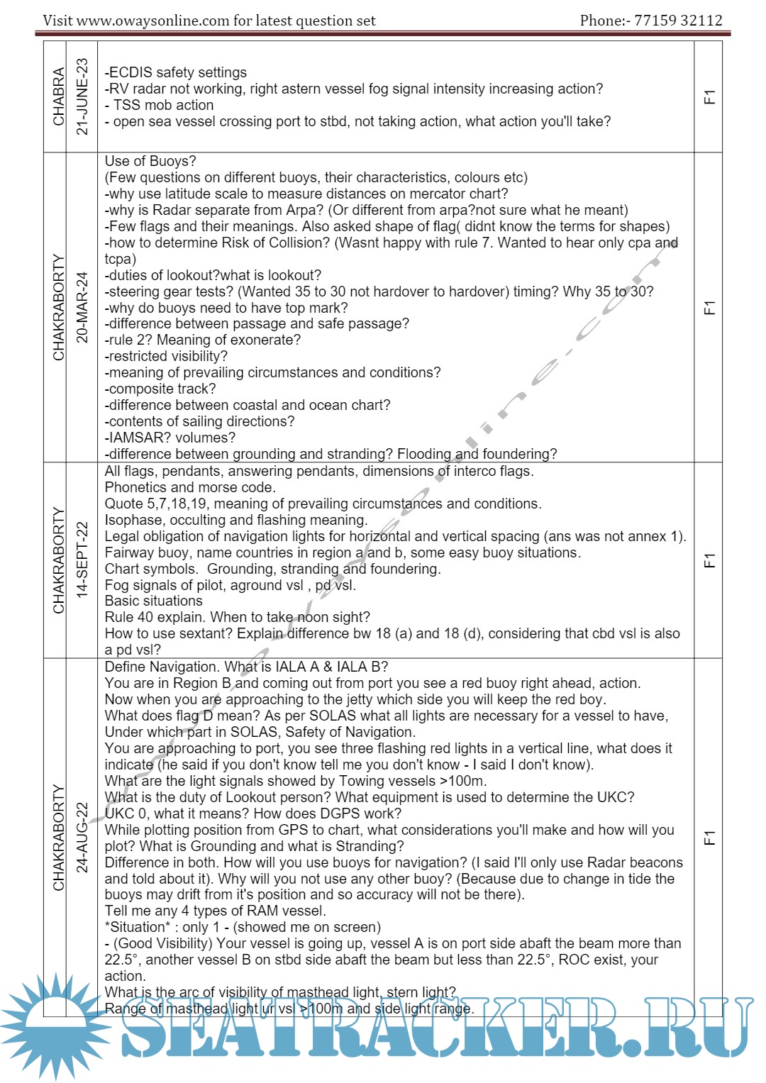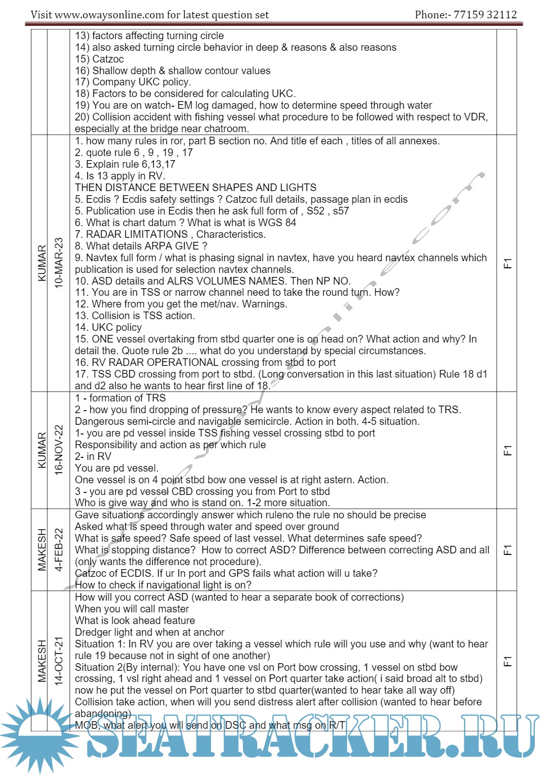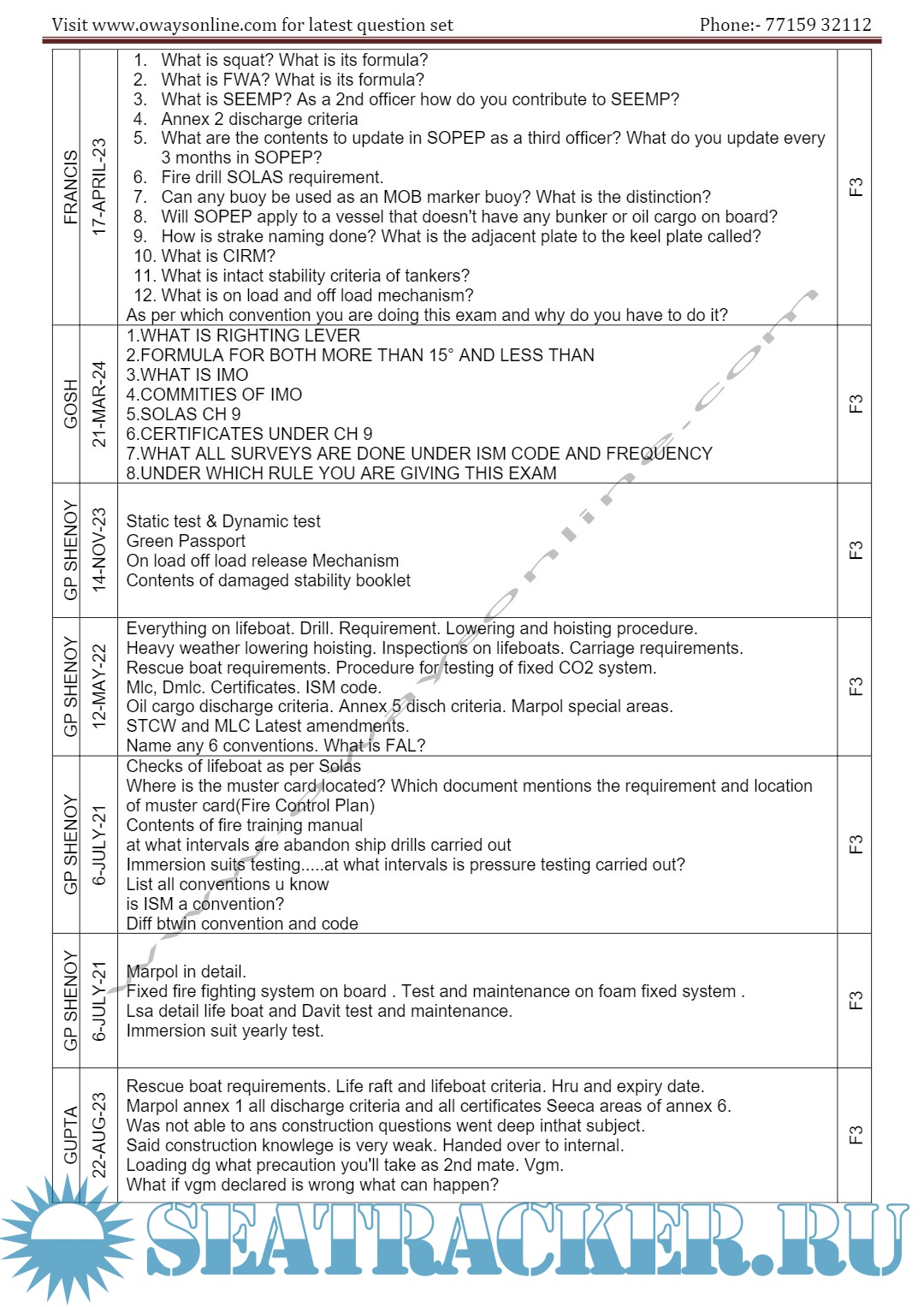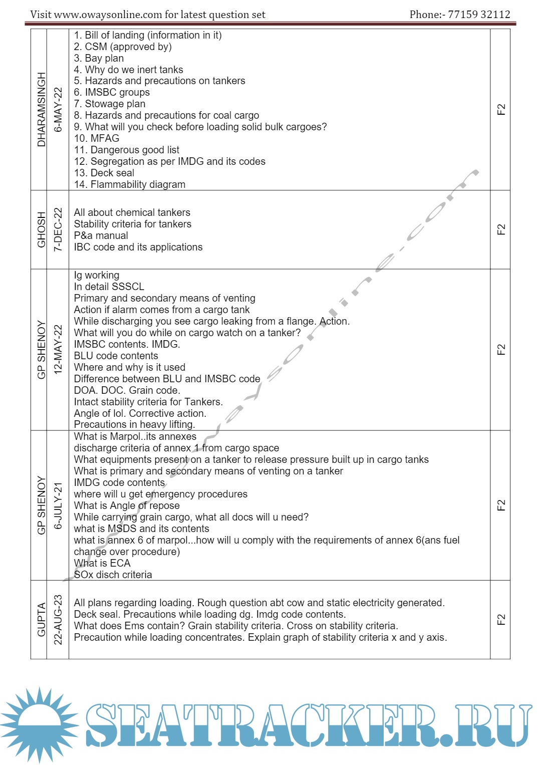 Description: 2nd Mate MMD Orals Exams Surveyor Question Set Mumbai.Question set arranged in the order Functions / surveyors / Dates.Please