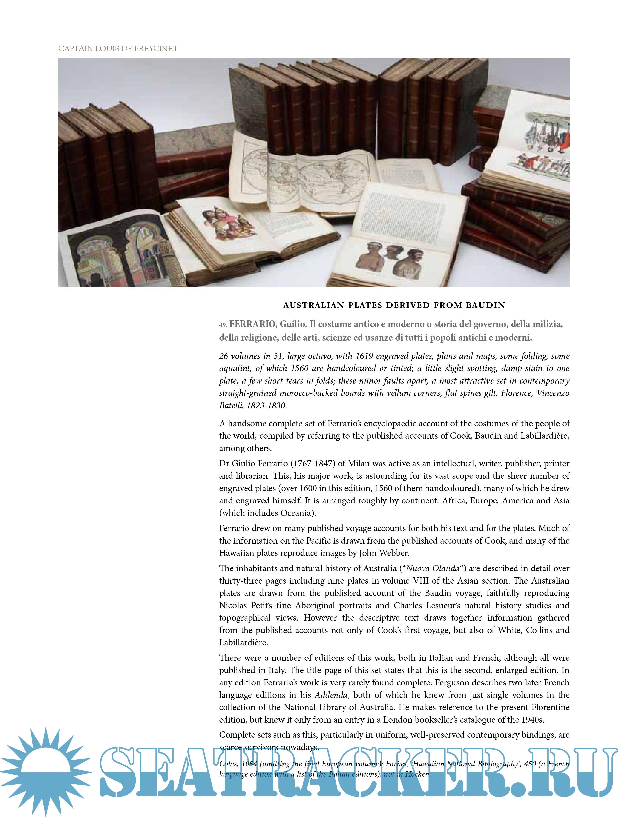 Year: 2010 Language: English Author: Hordern House Genre: History Format: PDF Quality: eBook Pages count: 169 Description: An important collection of printed and original manuscript and pictorial material relating to the two great French expeditions to Australia, the 1800 voyage under Captain Nicolas Baudin and the 1817 voyage of Captain Louis-Claude de Saulces de Freycinet. Louis de Freycinet is the figure who unites these two important voyages: he sailed with Baudin as a junior officer, quickly establishing himself as one of the great hydrographers, but also learning the demands of scientific exploration on the remote coastlines of Australia.