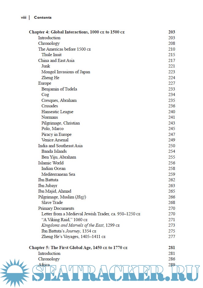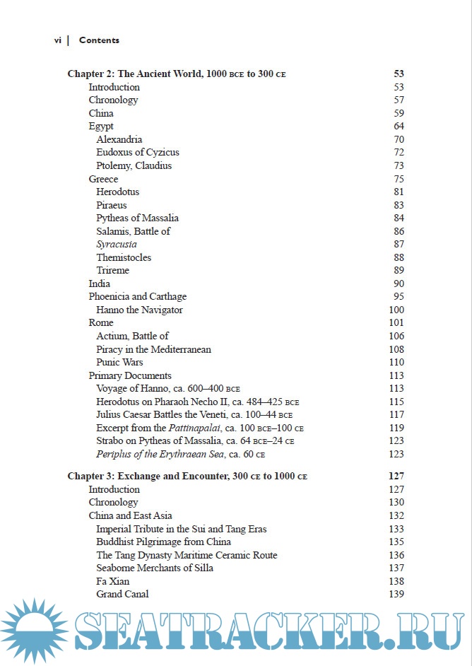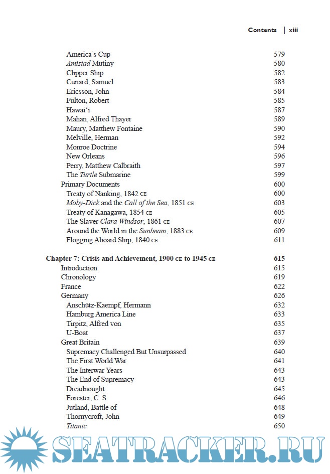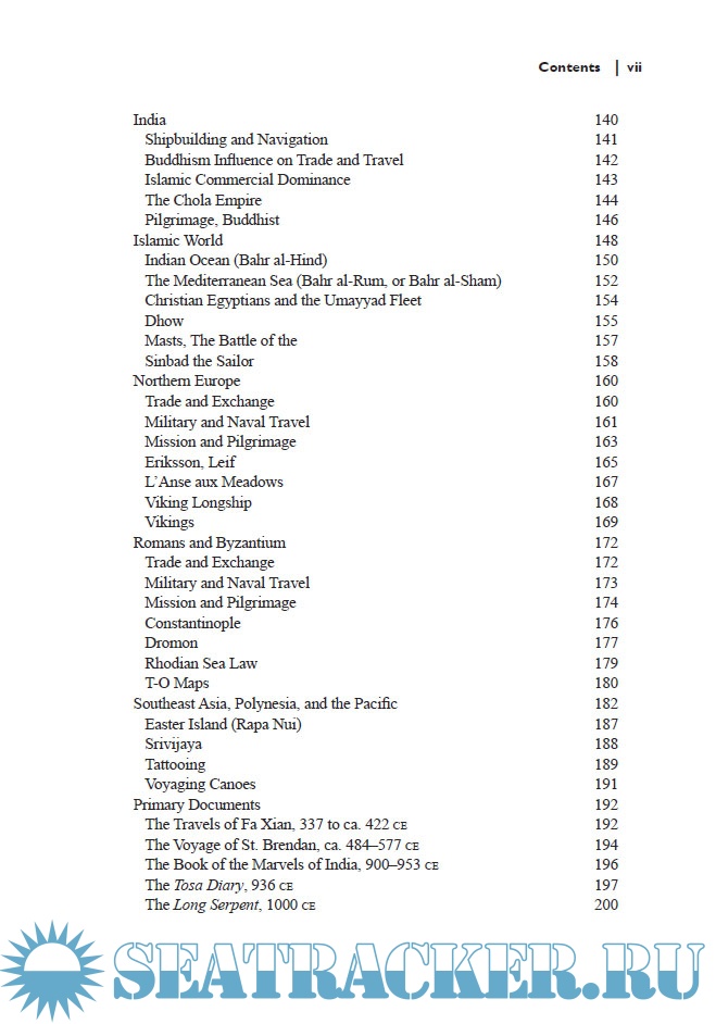 Year: 2017 Language: English Author: Stephen K. Stein (Editor) Genre: History Publisher: ABC-CLIO Format: PDF Quality: eBook Pages count: 940 Description: In all eras, water transport has served as the cheapest and most efficient means of moving cargo and people over any significant distance. Only relatively recently have railroads and aircraft provided an alternative. Most of the world's bulk goods continue to travel primarily by ship over water. Even today, 95 percent of the cargo that enters and leaves the United States does so by ship. Similarly, people around the world rely on the sea for food, and in recent years, the sea has become an important source of oil and other resources, with the longterm effects of our continuing efforts to extract resources from the sea further highlighting environmental concerns that range from pollution to the exhaustion of fish stocks. This chronologically organized two-volume reference addresses the history of the sea, beginning with ancient civilizations (4000 to 1000 BCE) and ending with the modern era (1945 to the present day). Each of the eight chapters is further broken down into sections that focus on specific nations or regions, offering detailed descriptions of that area of the world and shorter entries on specific topics, individuals, and events. The book spans maritime history, covering major seafaring peoples and nations; famous explorers, travelers, and commanders; events, battles, and wars; key technologies, including famous ships; important processes and ongoing events, such as piracy and the slave trade; and more. Readers will benefit from dozens of primary source documents―ranging from ancient Egyptian tales of seafaring to texts by renowned travelers like Marco Polo, Zheng He, and Ibn Battuta―that provide firsthand accounts from the age of discovery as well as accounts of battle from World War I and II and more modern accounts of the sea.