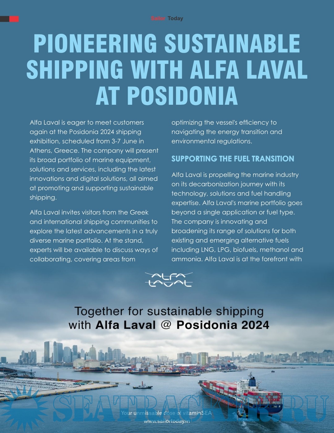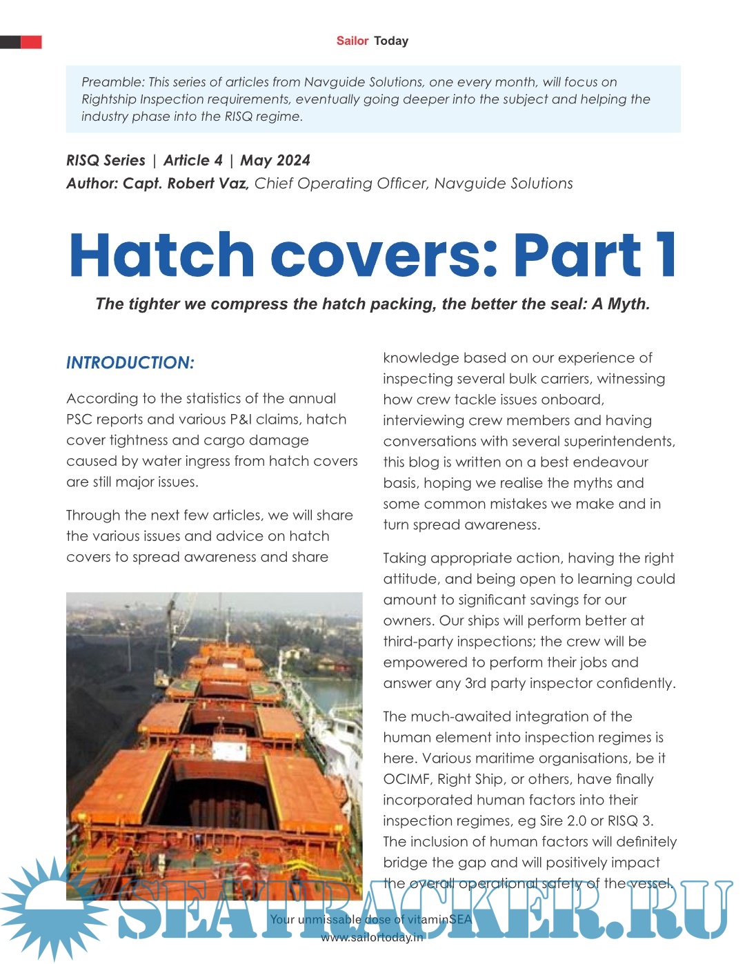 Year: 2024 Language: English Author: Capt. Sunil Nangia Genre: Periodical (magazine) Format: PDF Quality: eBook Pages count: 32 Description: Sailor Today is an International Shipping magazine published monthly. With `The Seafarer’ who is also our nation`s ambassador overseas, as our Prime Focus, we endeavor to keep the Maritime Profession in the forefront of our publication as well as all our events. We at `Sailor Today’ carry a vision to Promote the Maritime Profession, which is the backbone of our country`s economy. Additional info: Your unmissable dose of Vitamin Sea. Google Play Store App: https://seatracker.club/viewtop...?p=101728#101728