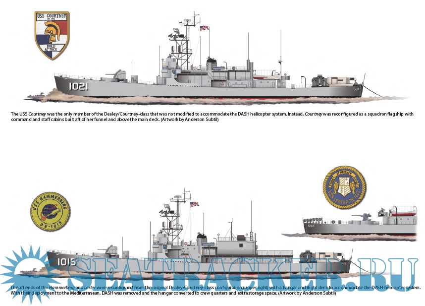 Obsolete, except for the experimental anti-submarine warfare sensor they carried, the USS Hammerberg, DE-1015, the USS Courtney, DE-1021 and the USS Lester, DE-1022 went to the Mediterranean to demonstrate the potential of a technology that relied on a passive towed array detection system; what the Navy officially designated as the Interim Towed Array Surveillance System (ITASS).