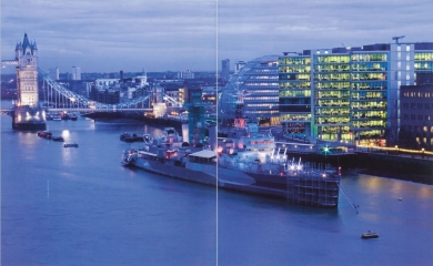 Description: There are many museums in London that detail Britain's experience during World War II. Some of the most well known museums fell under the jurisdiction of the Imperial War Museum with one of them being the warship HMS Belfast, which is located on the Thames River in London. A veteran of World War II in both the Atlantic and Pacific as well as in Korea during the 1950-1953 war, HMS Belfast escaped the scrap yard and became the third museum under the Imperial War Museum's jurisdiction in 1978.