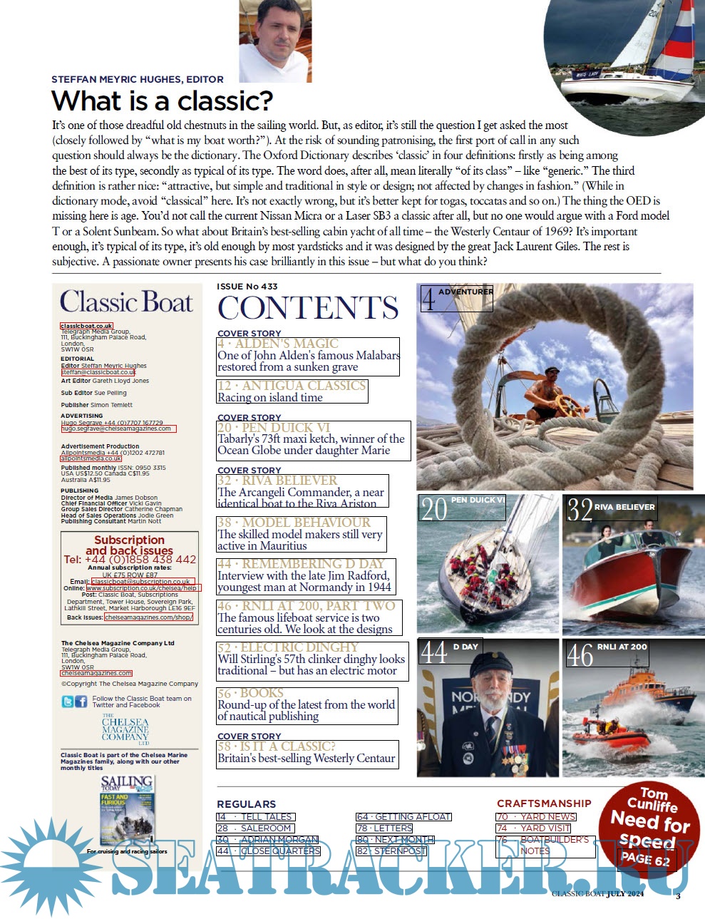 Year: 2024 Language: English Editor: Steffan Hughes Genre: Periodical (magazine) Edition: July 2024 Format: PDF Quality: eBook Pages count: 84 Description: Classic Boat is the magazine for the world’s most beautiful boats. Packed with stunning images, we have the inside stories of the great classic yachts and motorboats afloat today, as well as fascinating tales from yesteryear and the latest from the wooden boat building scene around the world.