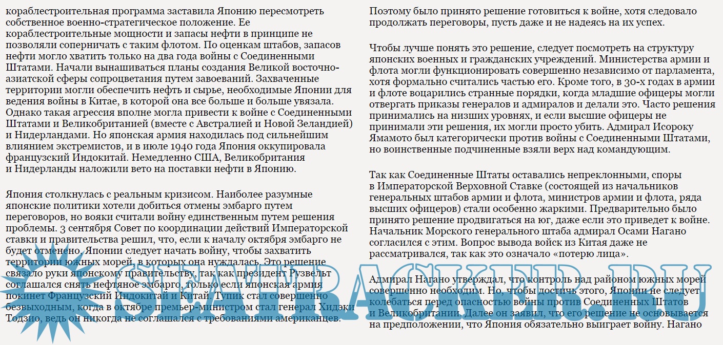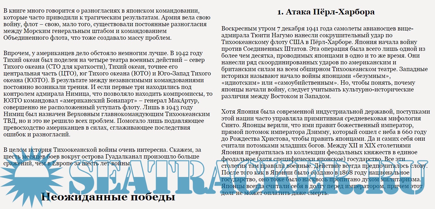 В книге Александра Геннадьевича Больных читатель сможет найти подробный анализ действий японского императорского флота во время Второй мировой войны и узнать о причинах громких побед и тяжелых поражений, а также погрузиться в хитросплетения интриг и соперничества между флотом и армией. Особо стоит отметить бережное отношение автора к историческим документам и тщательную работу с источниками, в том числе и зарубежными.