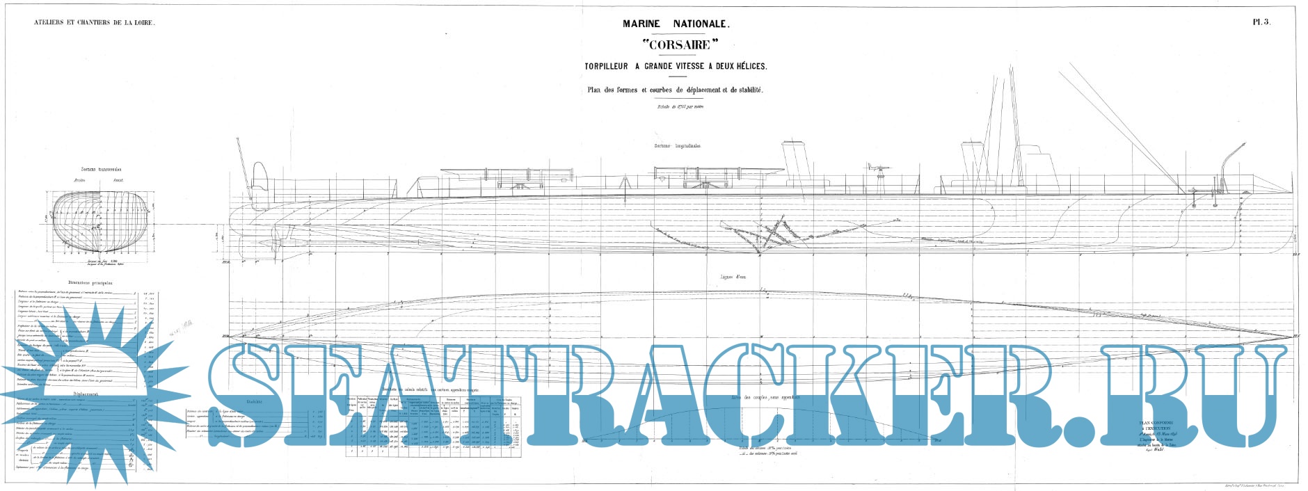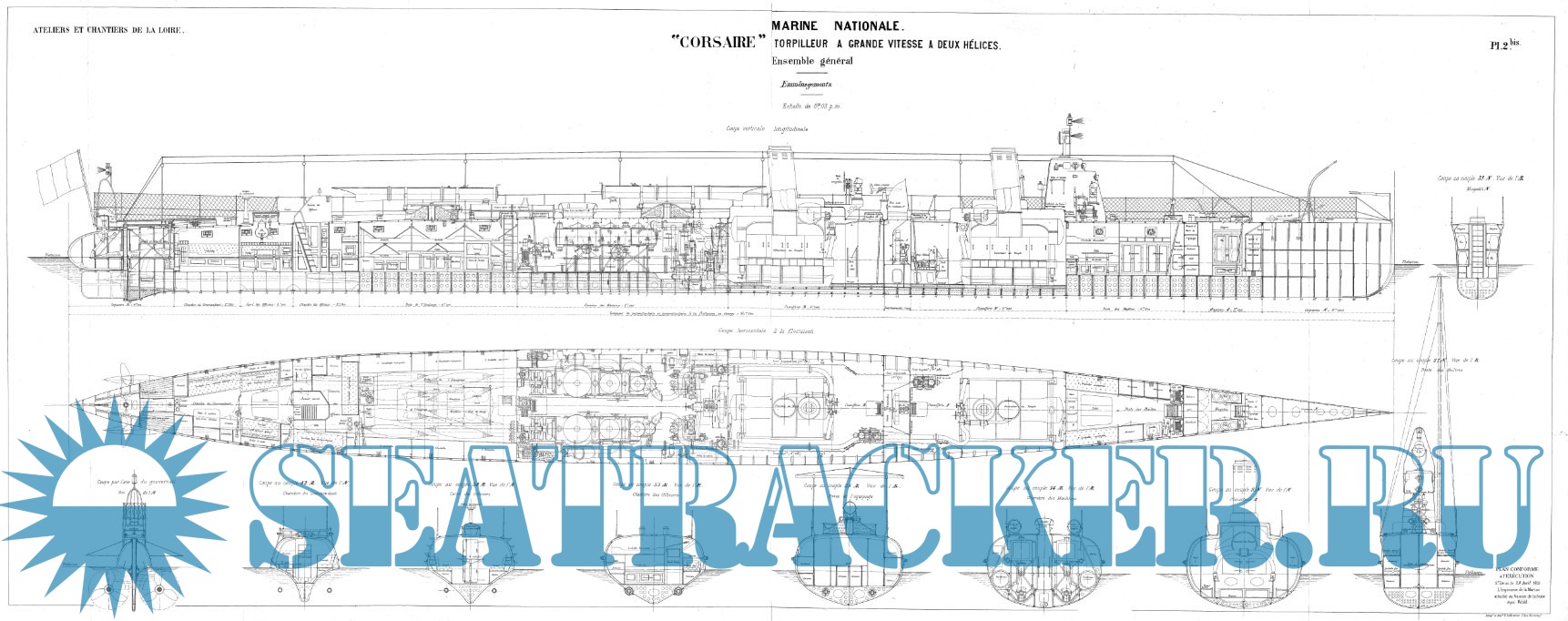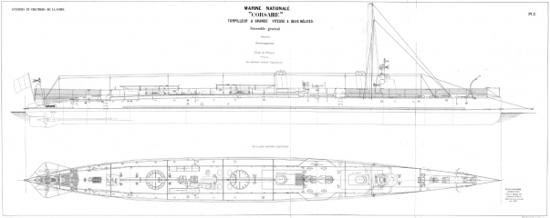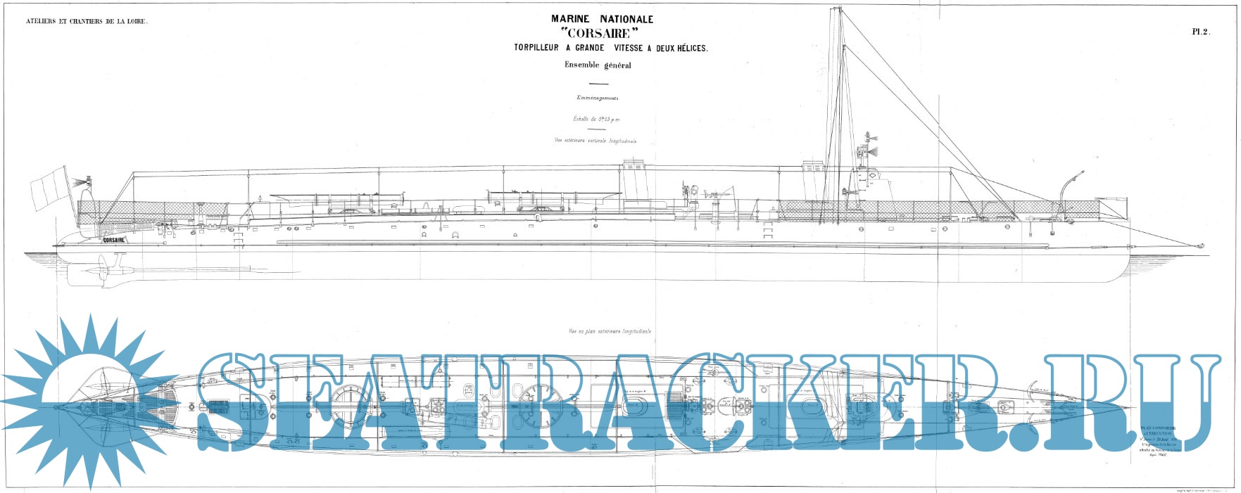 Архивные чертежи французского миноносца CORSAIRE 1892 год