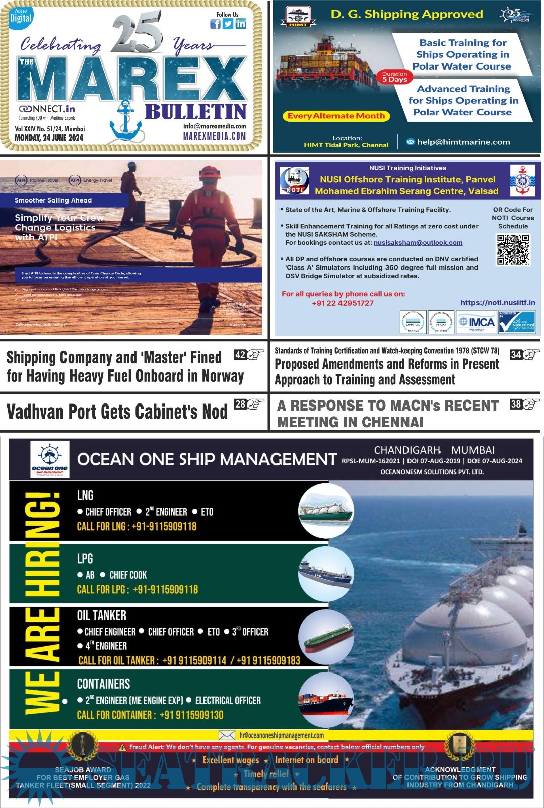 The Leading magazine for seafarers to locate Ship-board Employment opportunities, Training Institutes, Shipping companies.