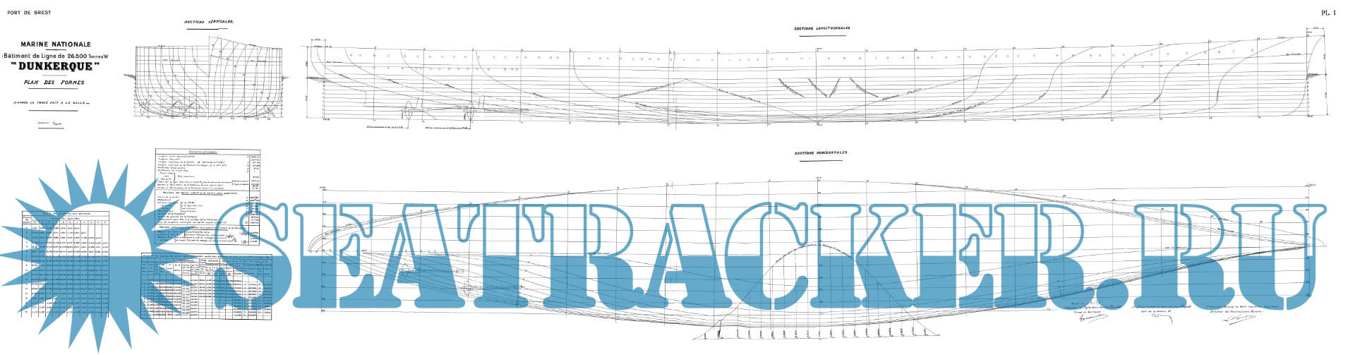 Архивные чертежи французского линкора DUNKERQUE 1935 год