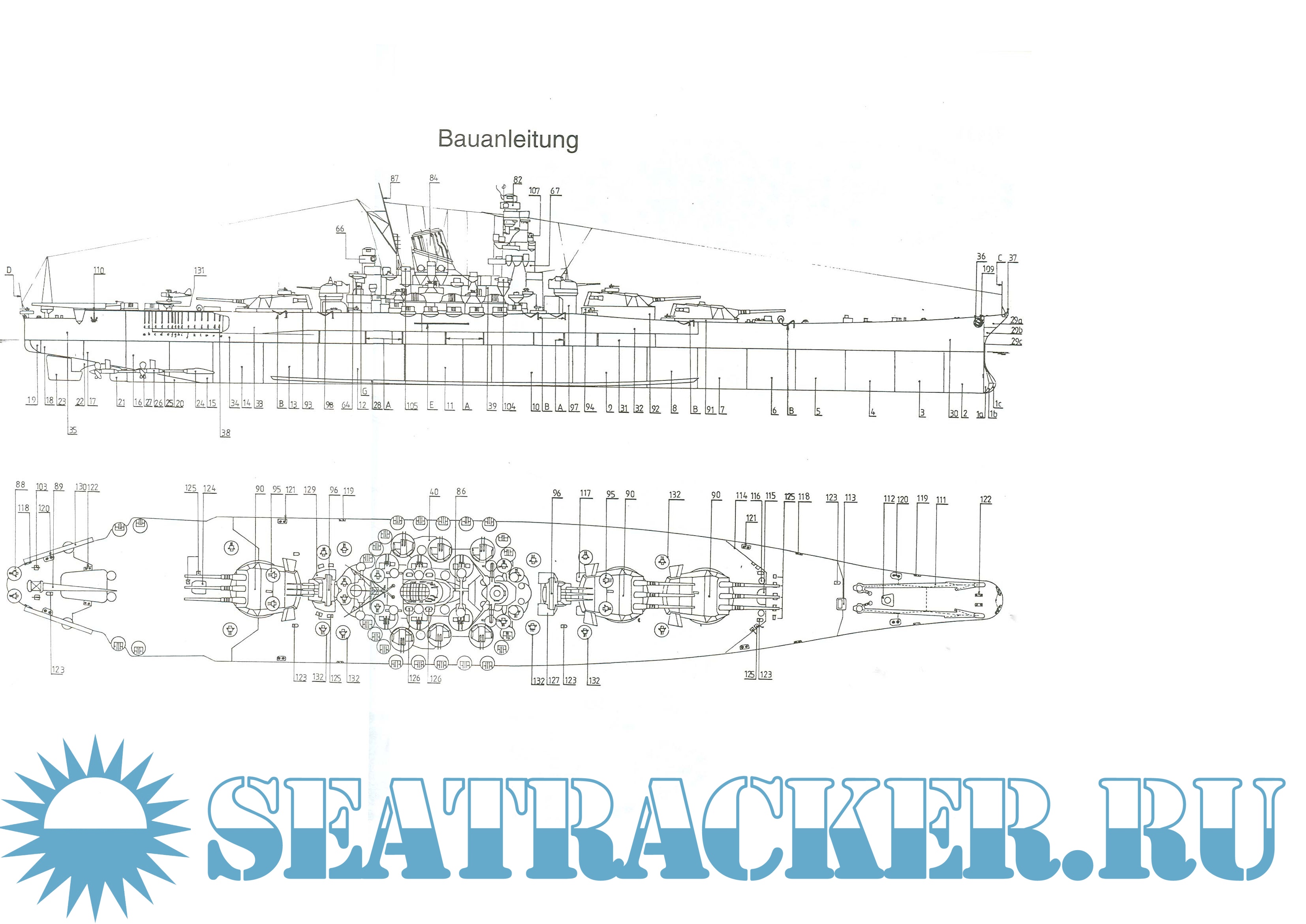 36 листов цветных выкроек и инструкций для изготовления бумажной модели японского линкора IJN YAMATO