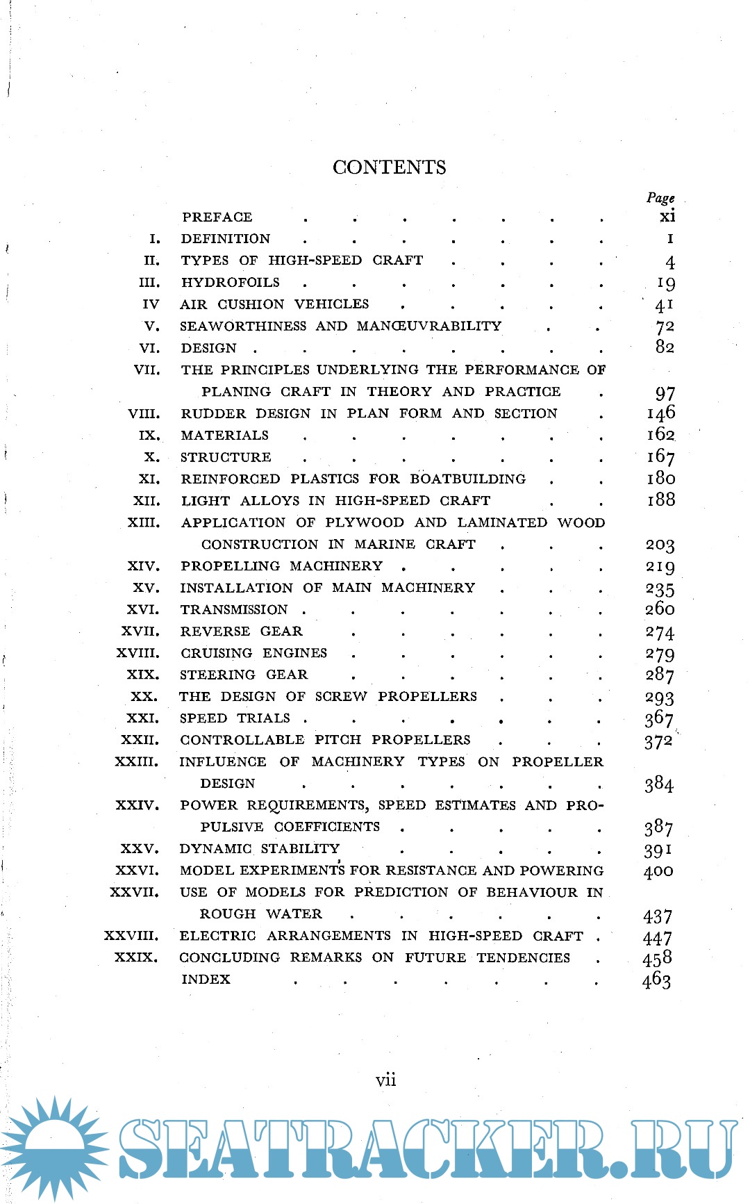 The object here has been to deal with the more specialised problems presented by high-speed craft, setting out the theory where available and adapting it to the practical problems arising.