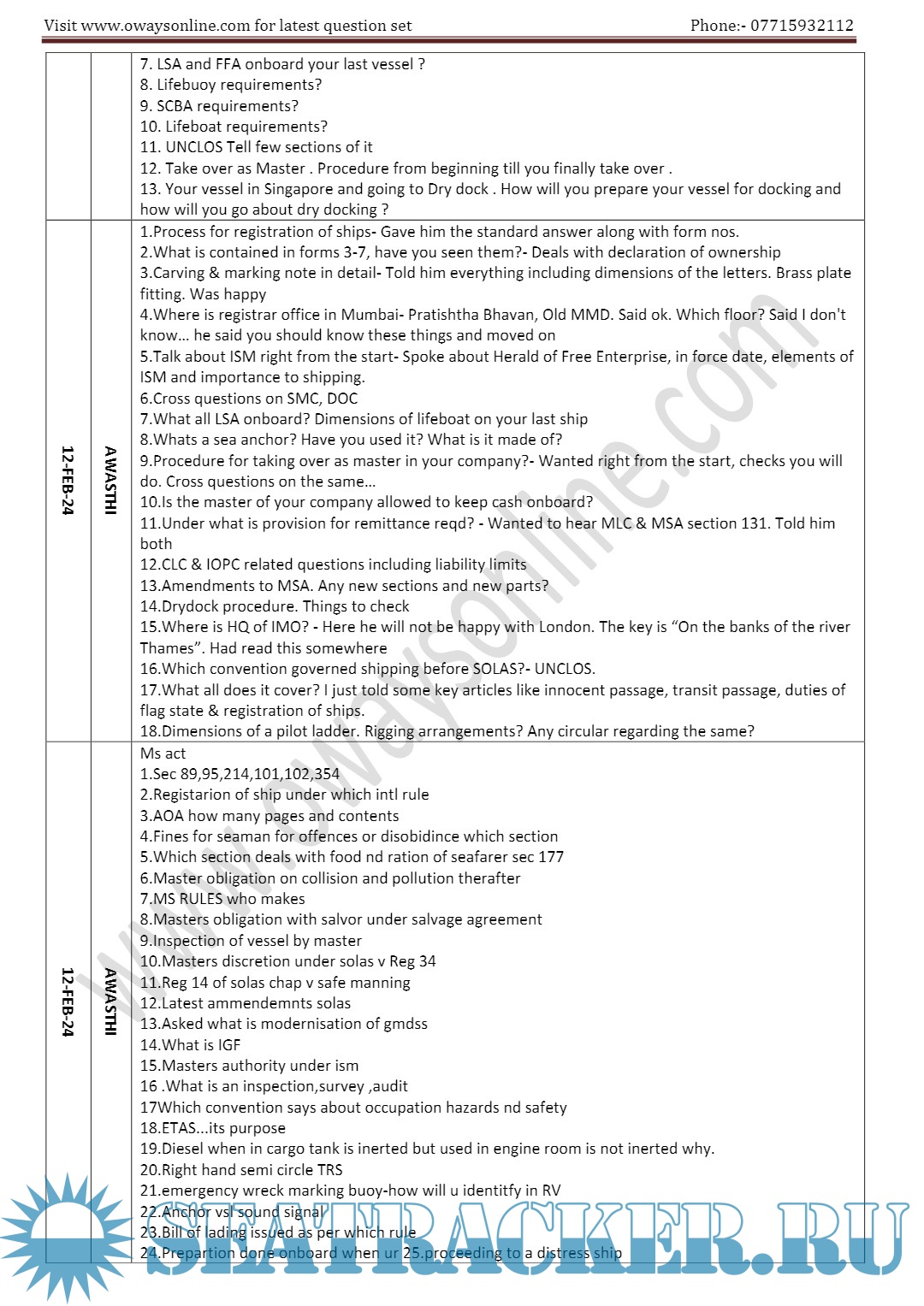 Orals Question Bank (June 2024) for ASM (Advanced Shipboard Management) / Master's Mercantile Marine Department (MMD), India Examinations