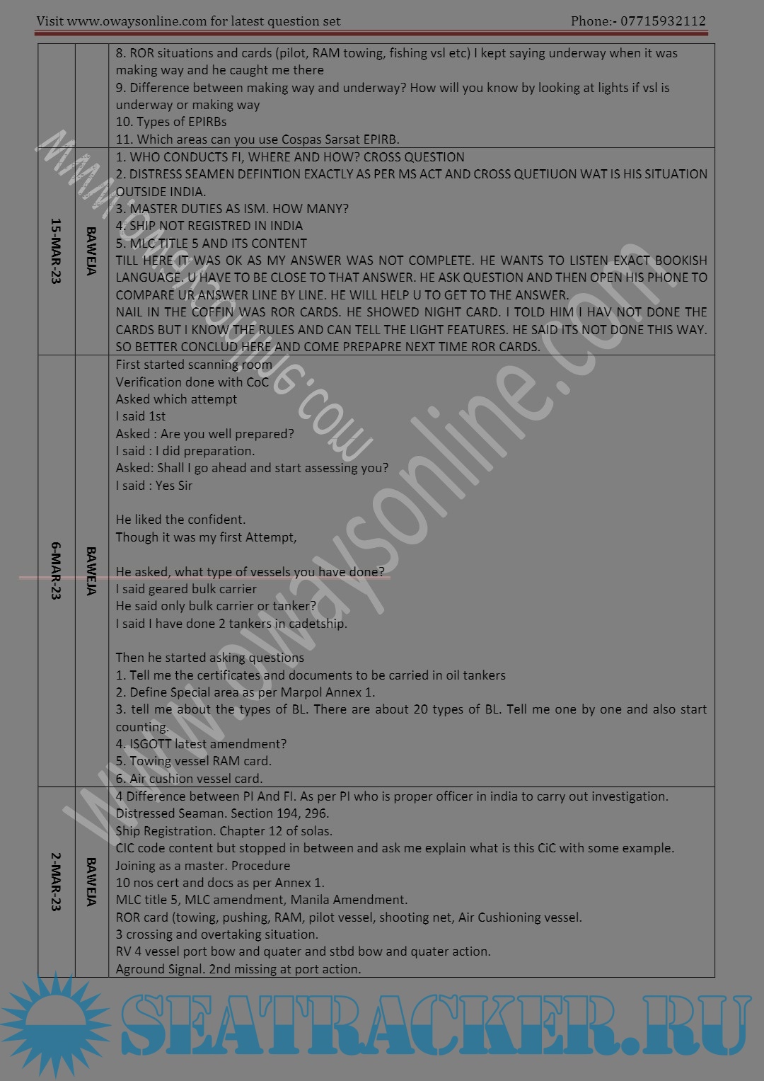 Description: Orals Question Bank for ASM (Advanced Shipboard Management) / Master's Mercantile Marine Department (MMD), India Examinations.Segregated as per Functions / Surveyors/ Dates.