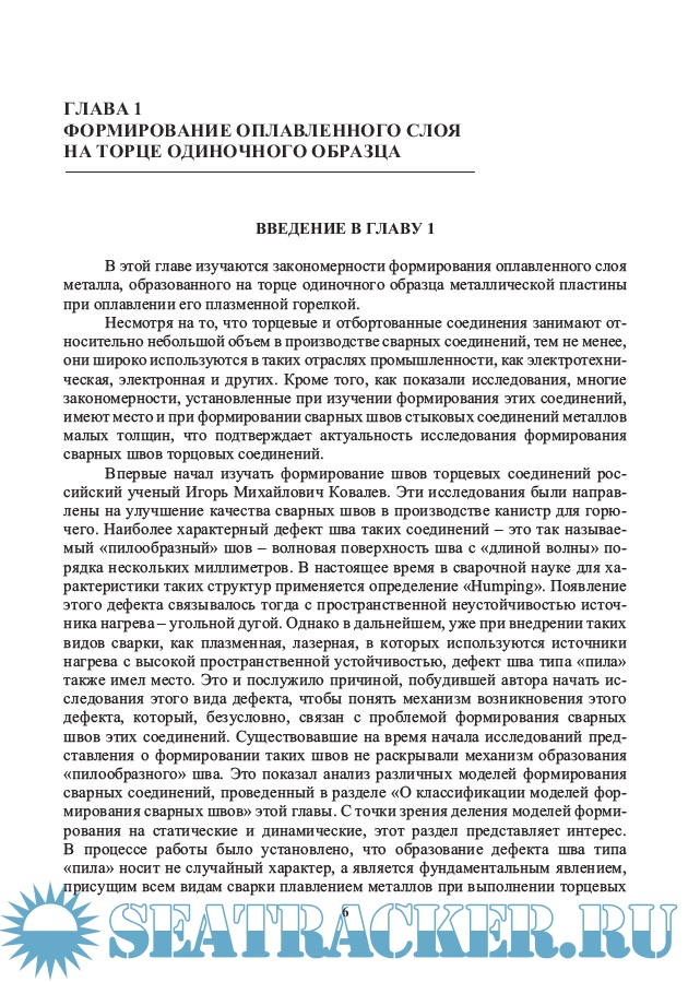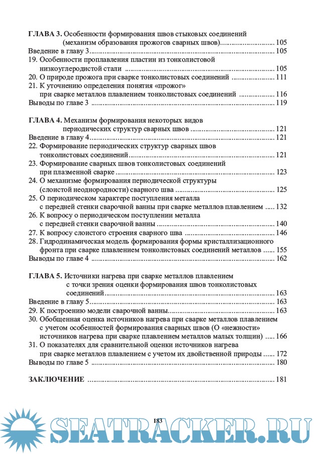 Описание: Рассмотрены проблемы образования некоторых видов периодических структур сварных швов: структур типа «Humping» (или структур типа «пилы» при сварке торцевых соединений), периодического прожога при сварке стыковых соединений, а также периодических структур типа слоистой неоднородности сварных швов. Исследование процессов формирования проводится на основе физического моделирования процессов сварки, при этом в качестве базовой модели использована ванна расплава, образующаяся на торце одиночного образца при его оплавлении различными источниками нагрева. Большинство глав посвящено формированию швов торцевых соединений. Рассматриваются и другие проблемы, связанные с формированием сварных швов, такие как модели сварочной ванны, количественная оценка различных по природе источников нагрева с точки зрения формирования сварных швов и др.