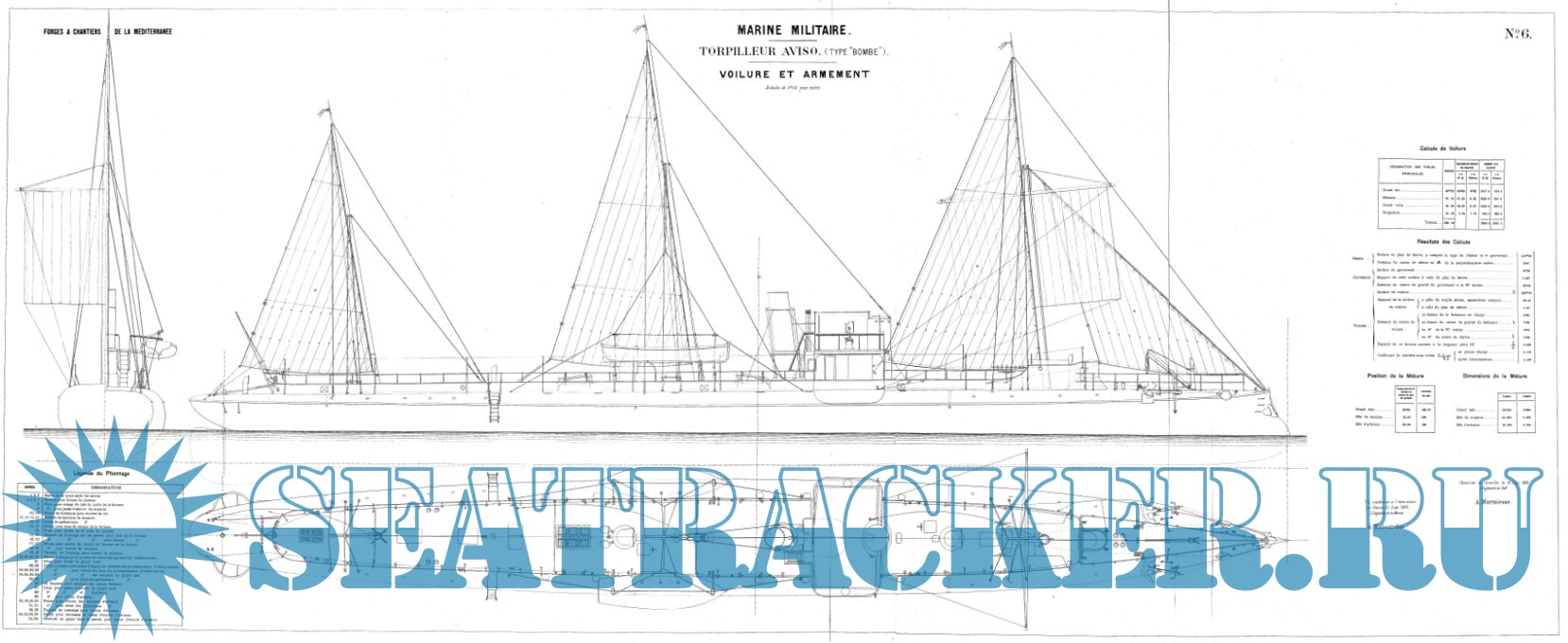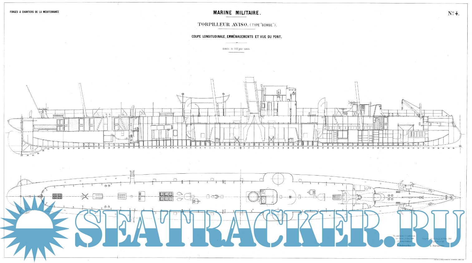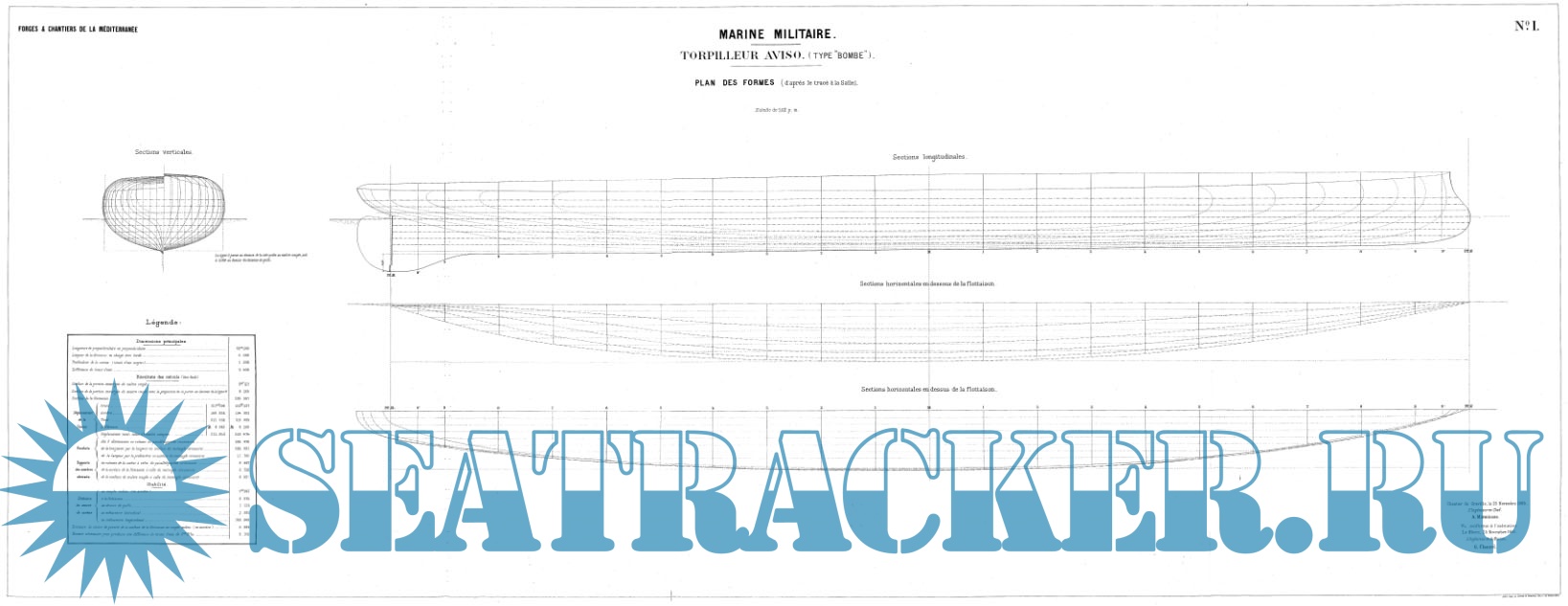 Архивные чертежи миноносца BOMBE 1885 год (Франция) - нет данных [1885, TIF]