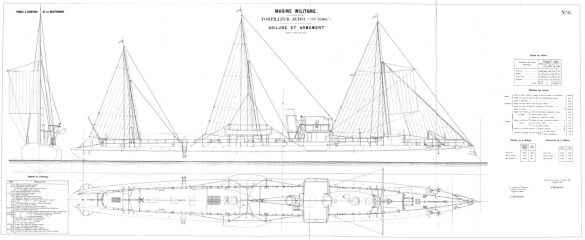 Архивные чертежи французского миноносца DAGUE 1885 год - нет данных [1885, TIFF]