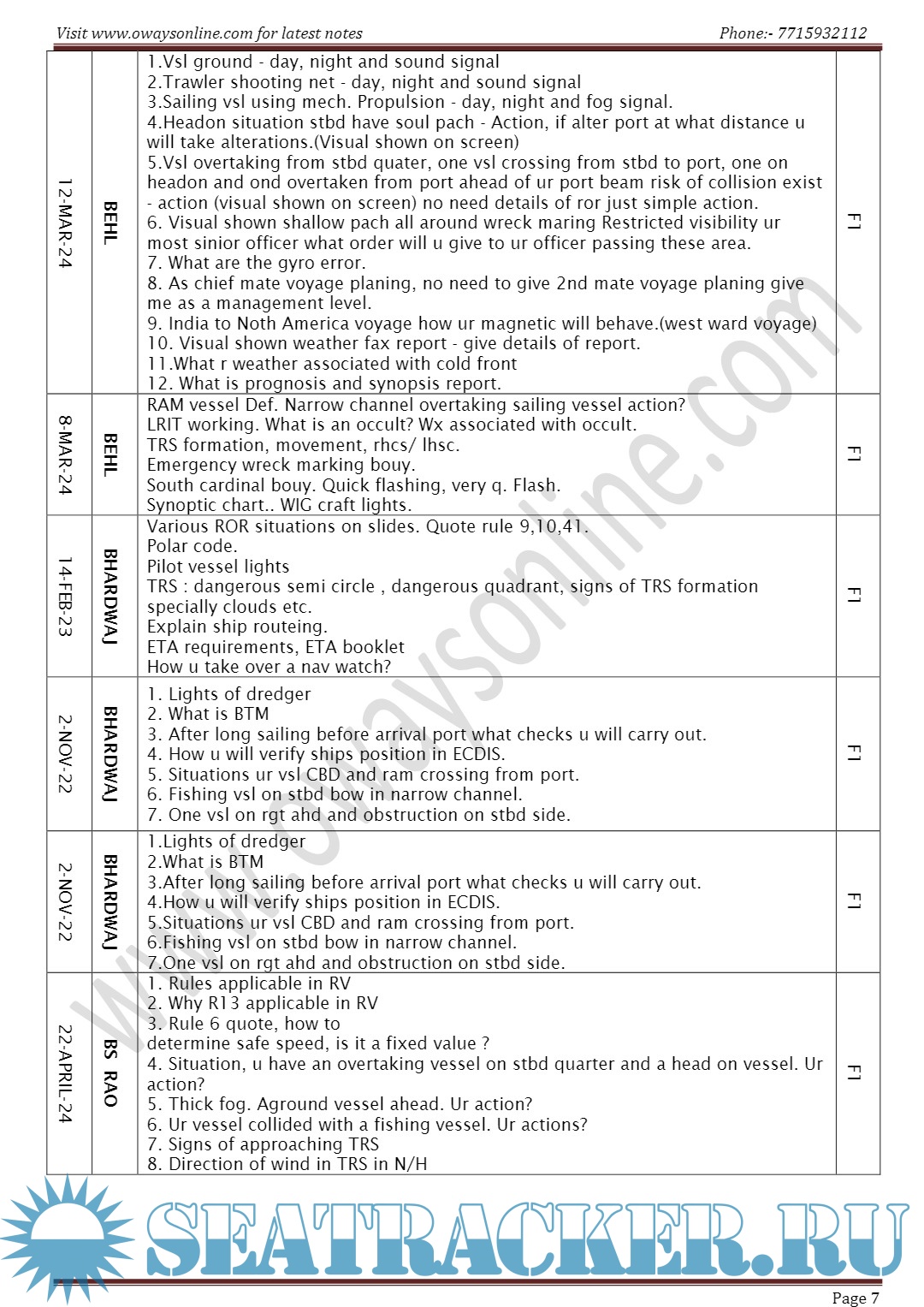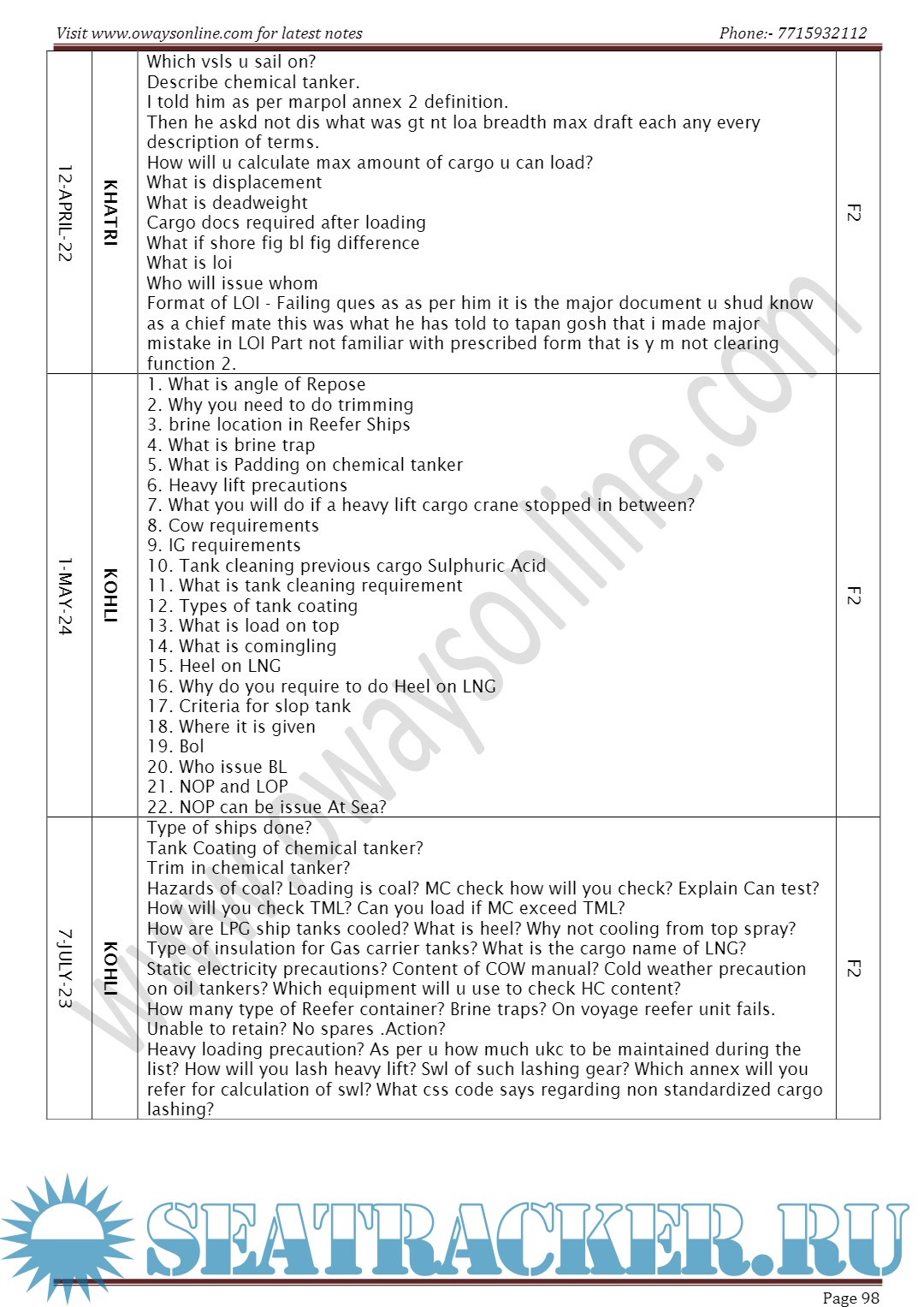 Description: Orals Question Bank for Chief Mate F.G. Mercantile Marine Department (MMD), India Examinations.