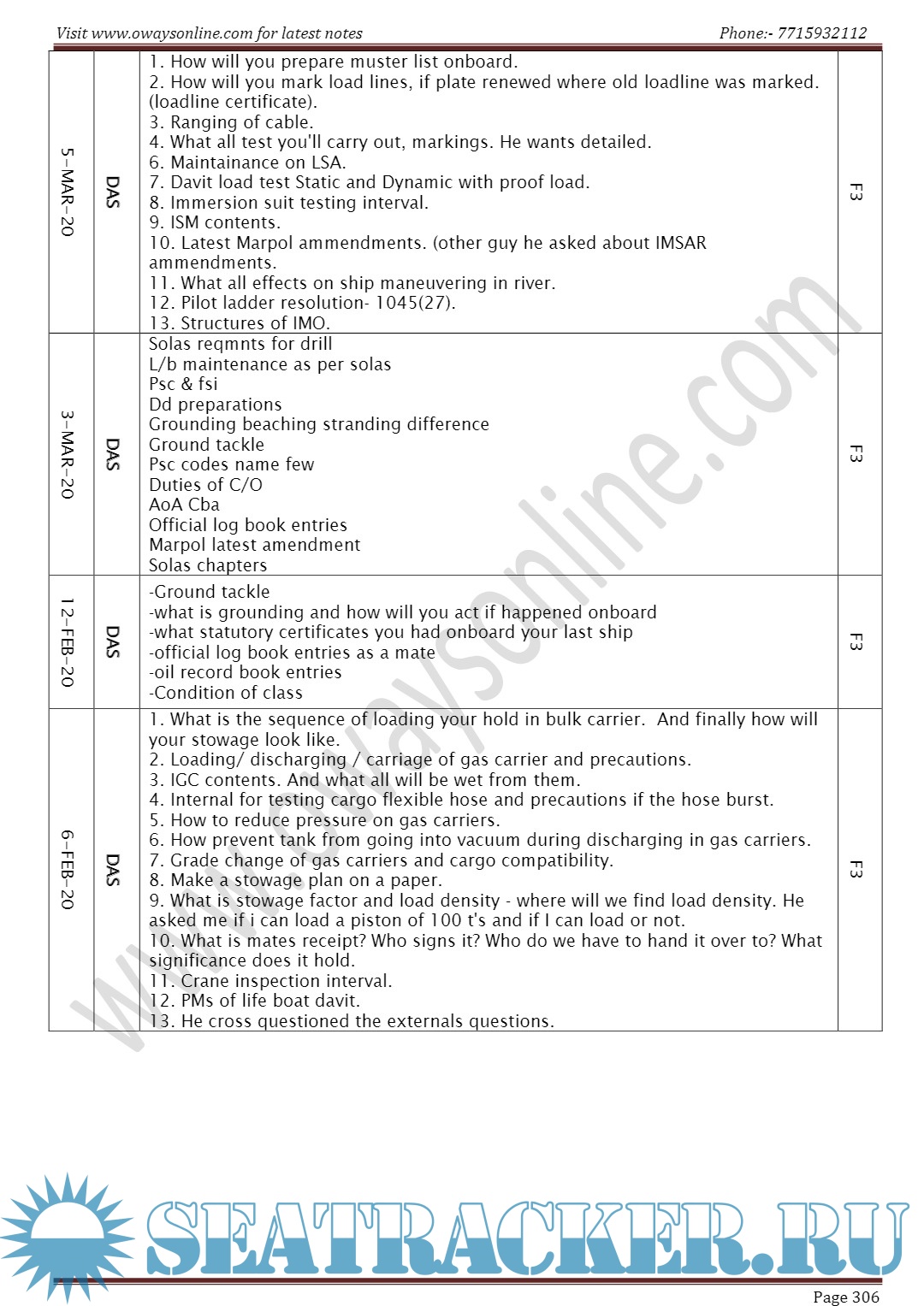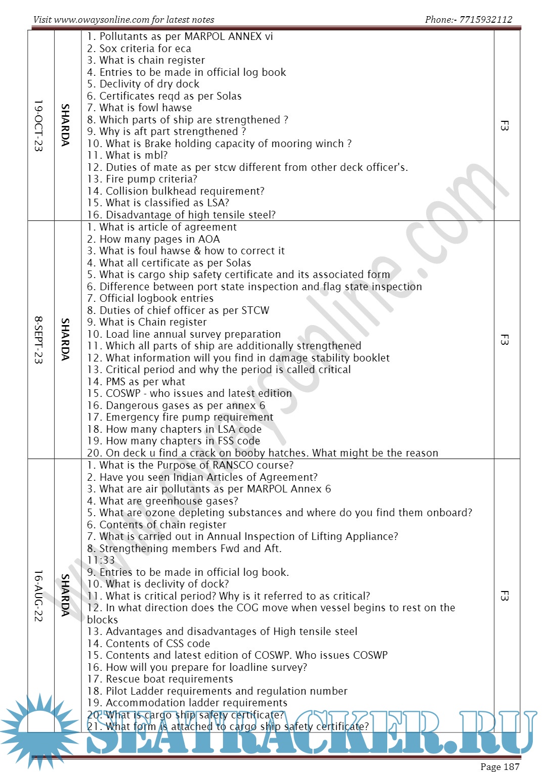 Year: 2024 Language: English Author: Oways Online Format: PDF Quality: eBook Pages count: 352 Description: Orals Question Bank for Chief Mate F.G. Mercantile Marine Department (MMD), India Examinations. Segregated as per Functions / Surveyors/ Dates.