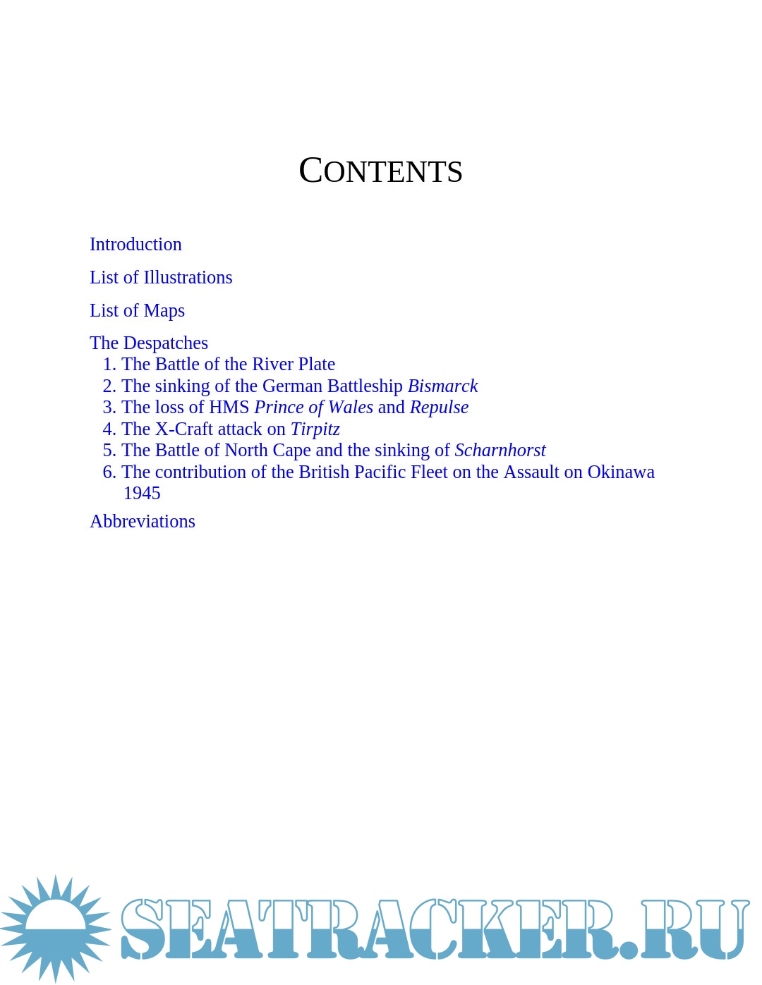 Description: Dispatches in this volume include those relating to the sinking of the German battleship Graf Spee in the Battle of the River Plate in 1939, the loss of the battleships HMS Prince of Wales and HMS Repulse in the Far East, the sinking of the German battle cruiser Scharnhorst in 1943, the attack on Tirpitz by midget submarines, the contribution by British Pacific Fleet to the assault on Okinawa in 1945 (which included four Royal Navy battleships), and the sinking of Bismarck in 1941.