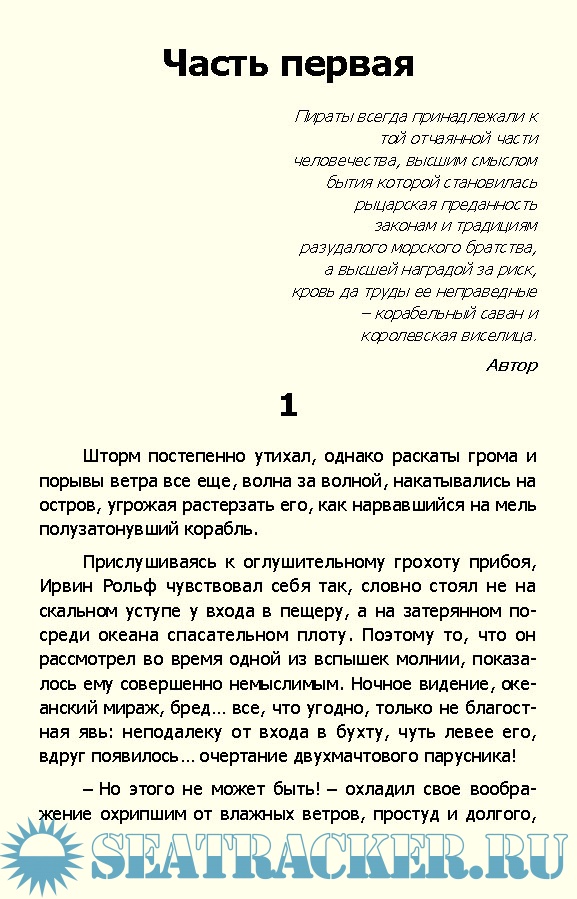 В романе Богдана Сушинского причудливо переплетаются вымысел и реальные факты из жизни пиратов XVIII века.