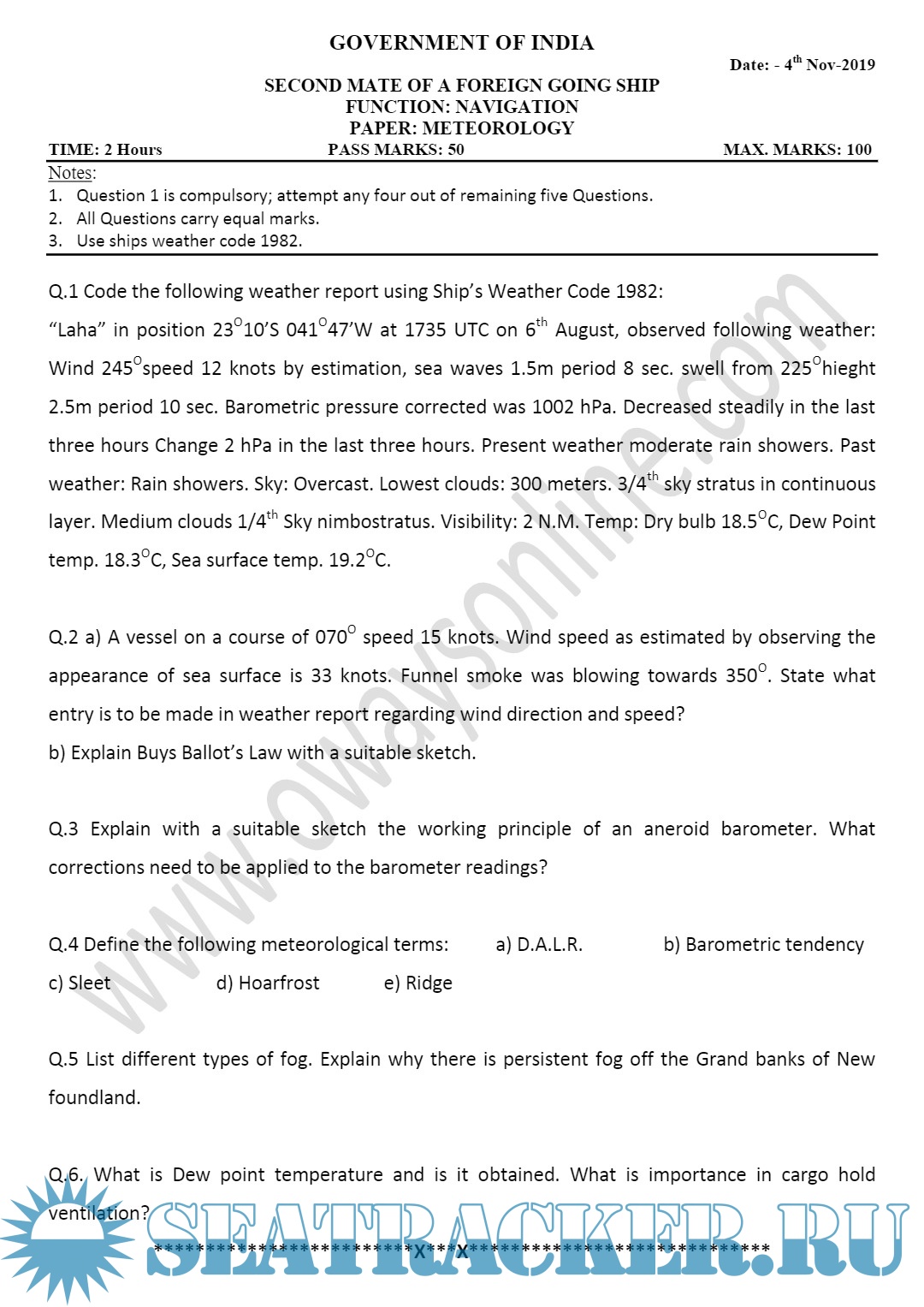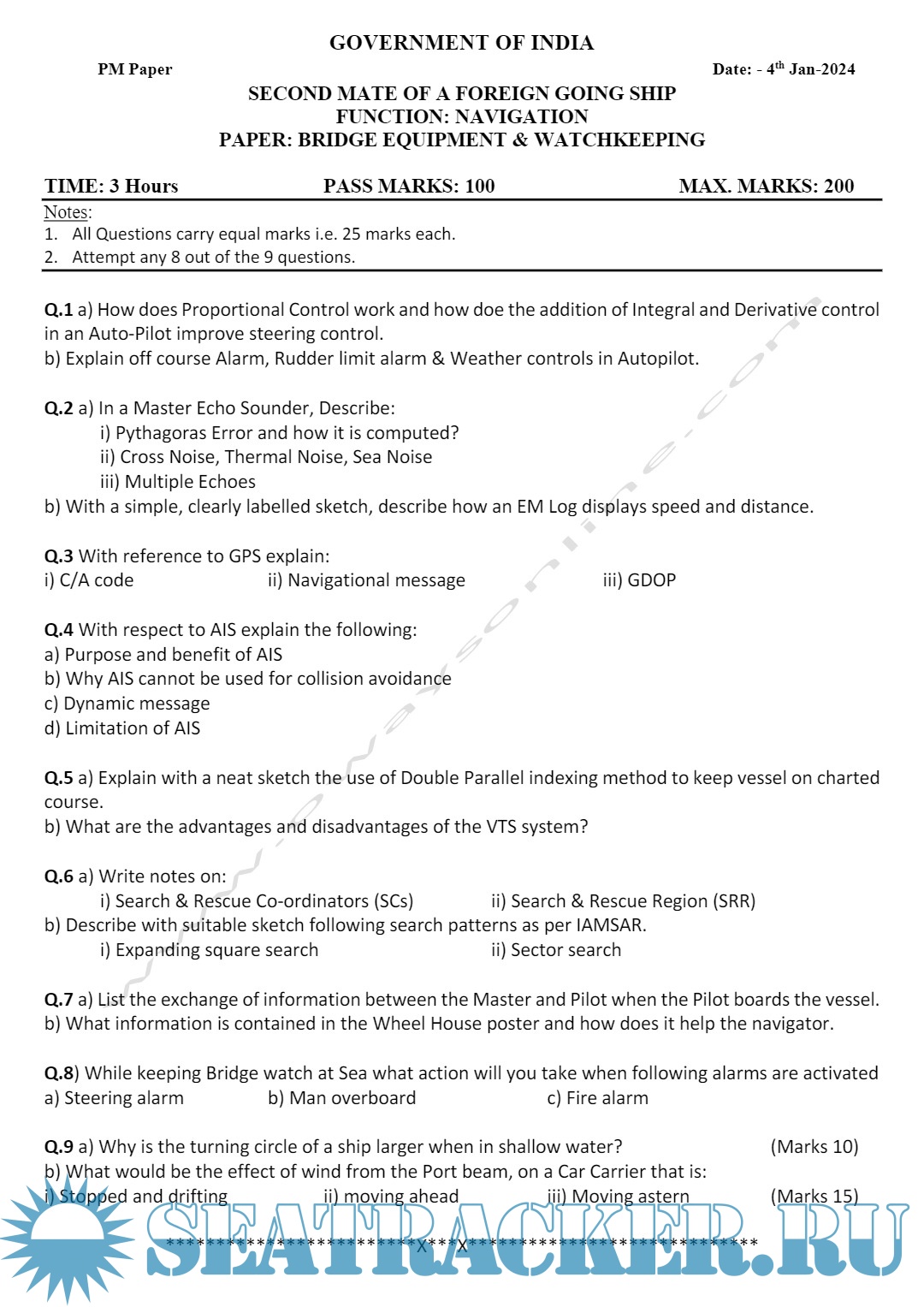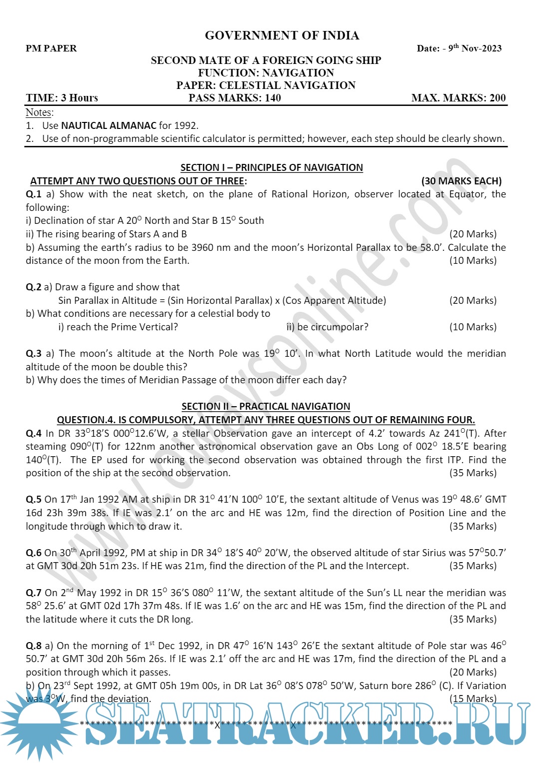 Question Paper Set (November 2023) for Second Mate (F.G.) Mercantile Marine Department (MMD), India…