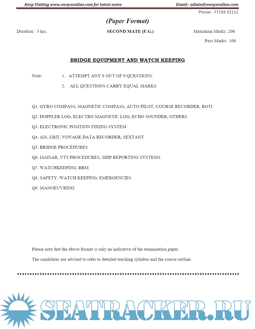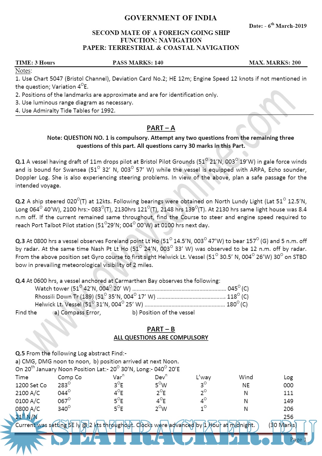 Question Paper Set (March 2023) for Second Mate (F.G.) Mercantile Marine Department (MMD), India…