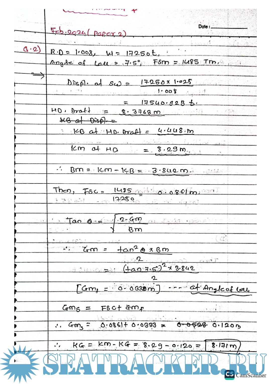 Handwritten Solutions for Hindship Numerical (2020-2024) Mercantile Marine Department (MMD), India Examinations.
