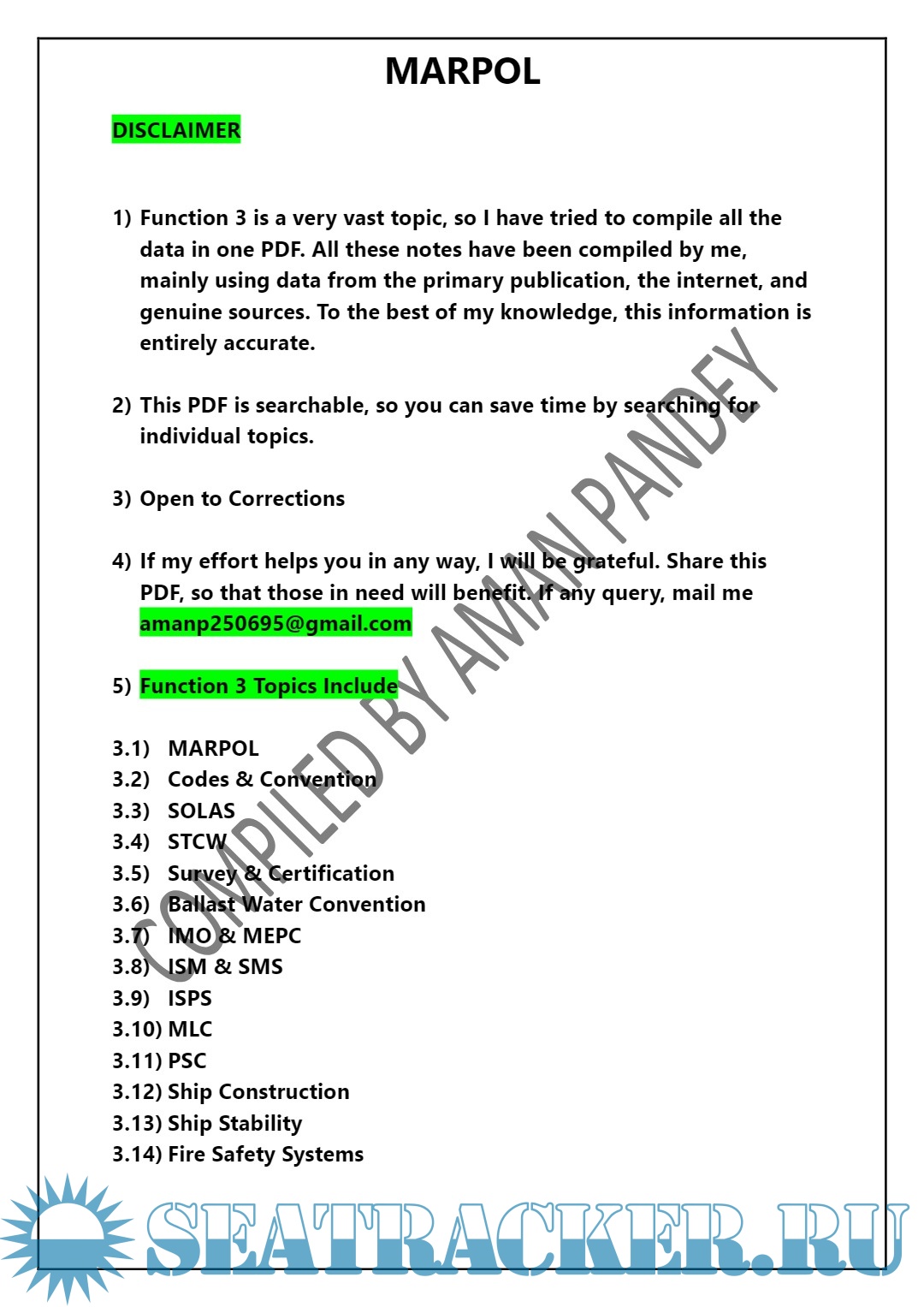 Chief Mate F.G. MMD, India Orals Exams Notes Based on Frequently Asked Questions: Function 3 -…